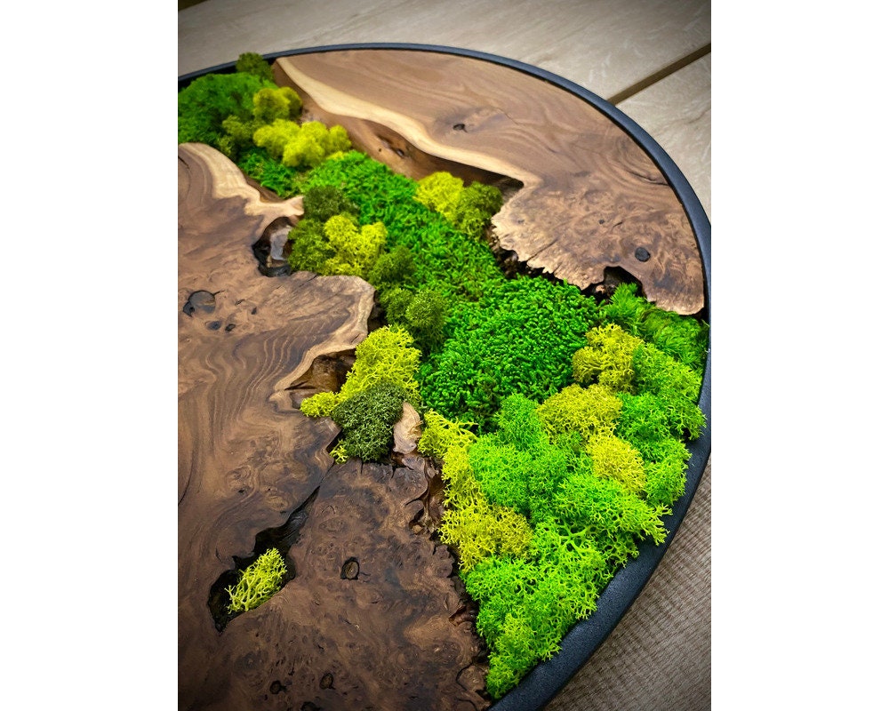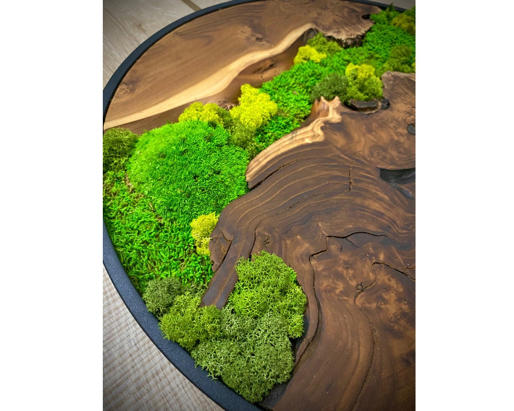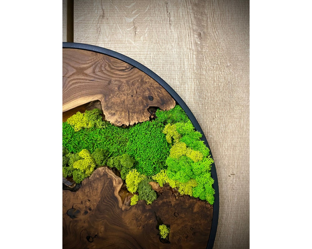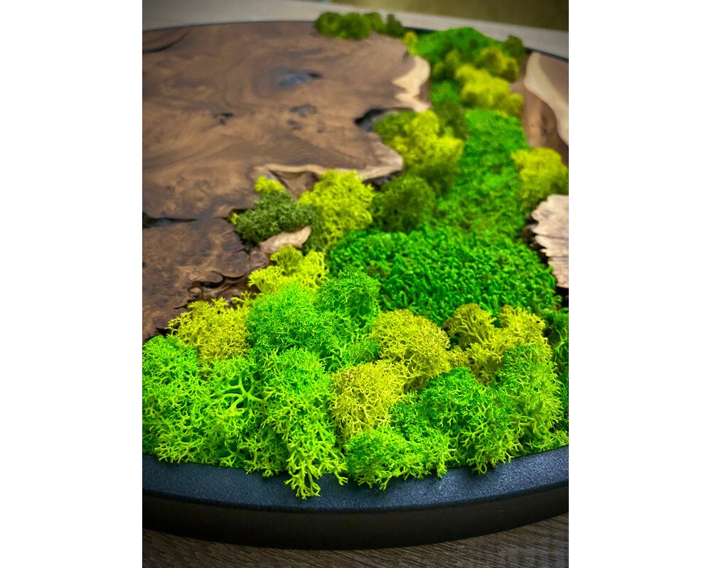 Preserved moss wall art needs no upkeep like watering, sunlight, or fertilizing. It stays the same size, just keep it away from sunlight, water and too much air.