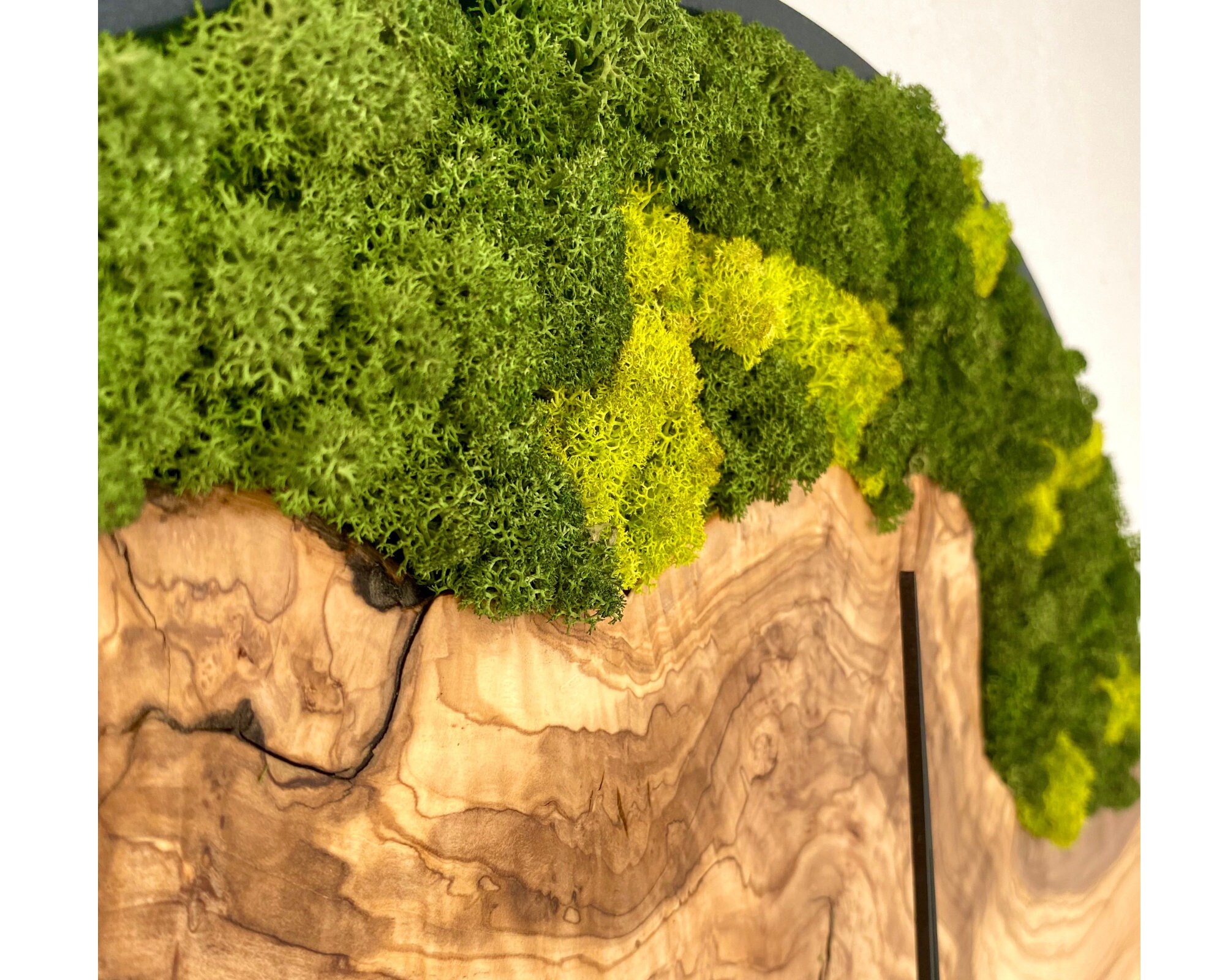 Preserved moss wall art needs no upkeep like watering, sunlight, or fertilizing. It stays the same size, just keep it away from sunlight, water and too much air.