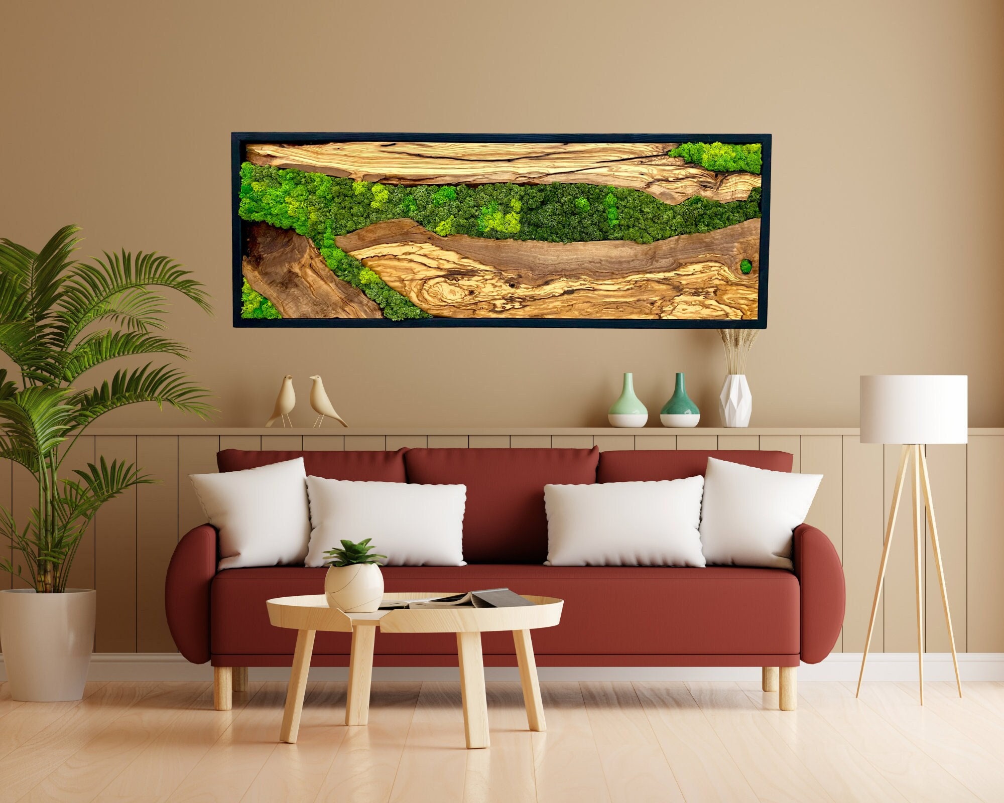 Preserved moss wall art needs no upkeep like watering, sunlight, or fertilizing. It stays the same size, just keep it away from sunlight, water and too much air.
