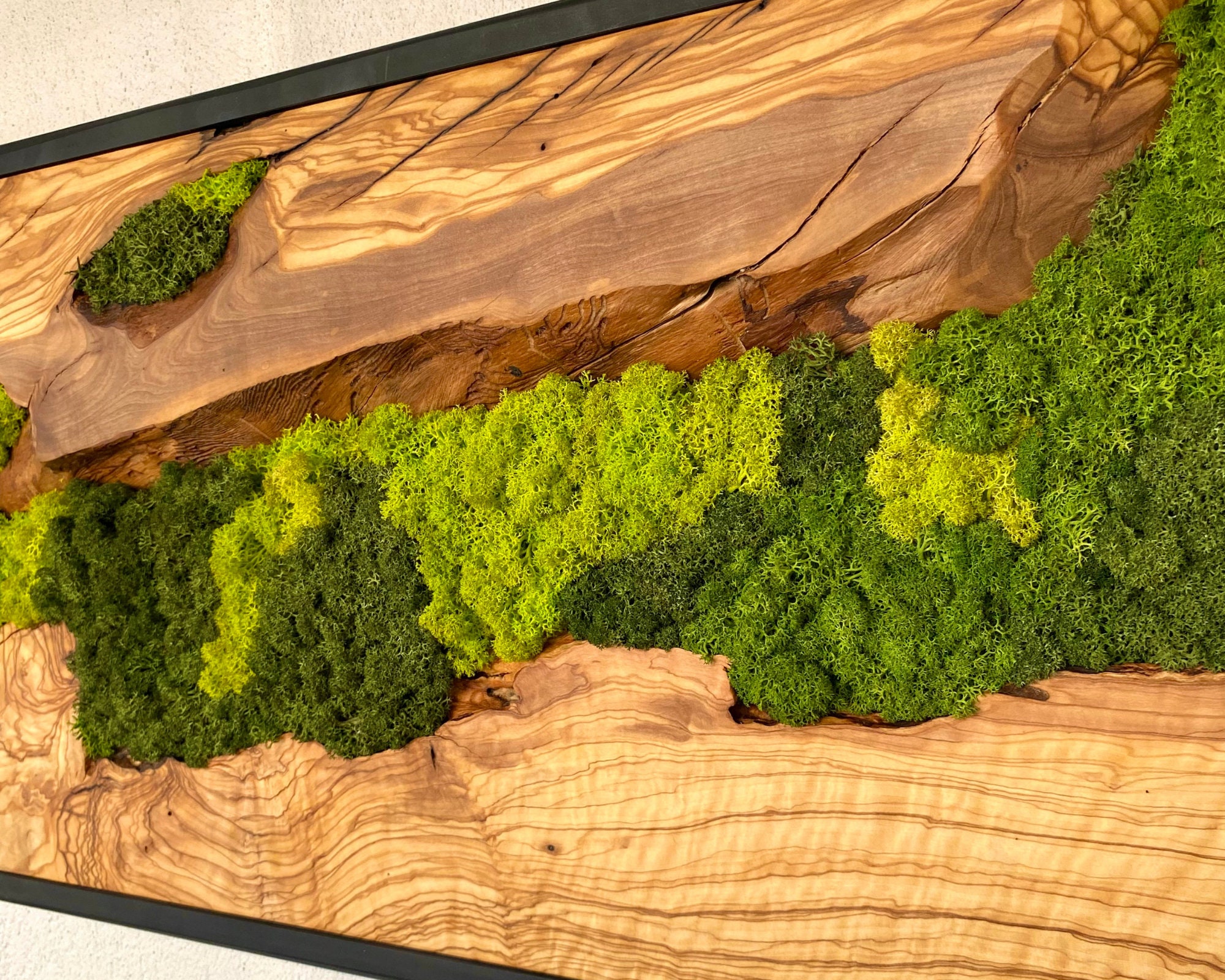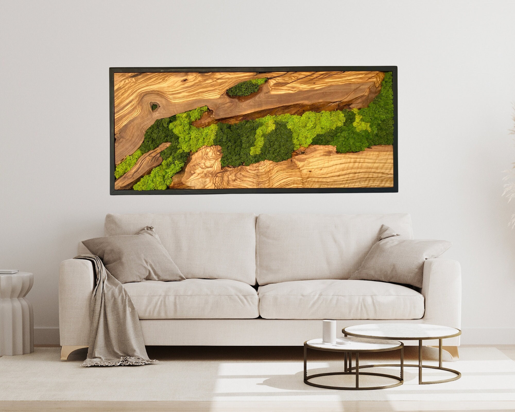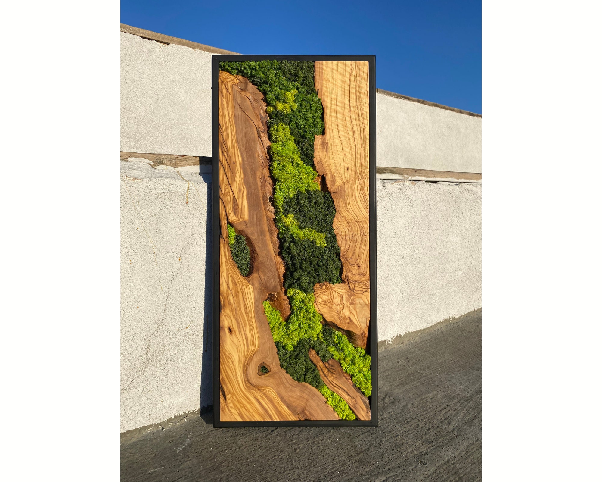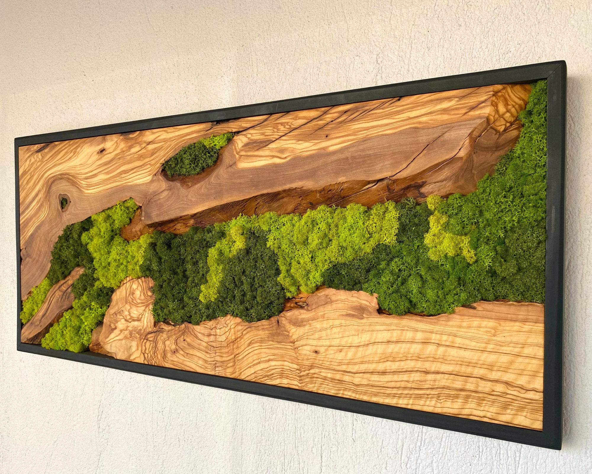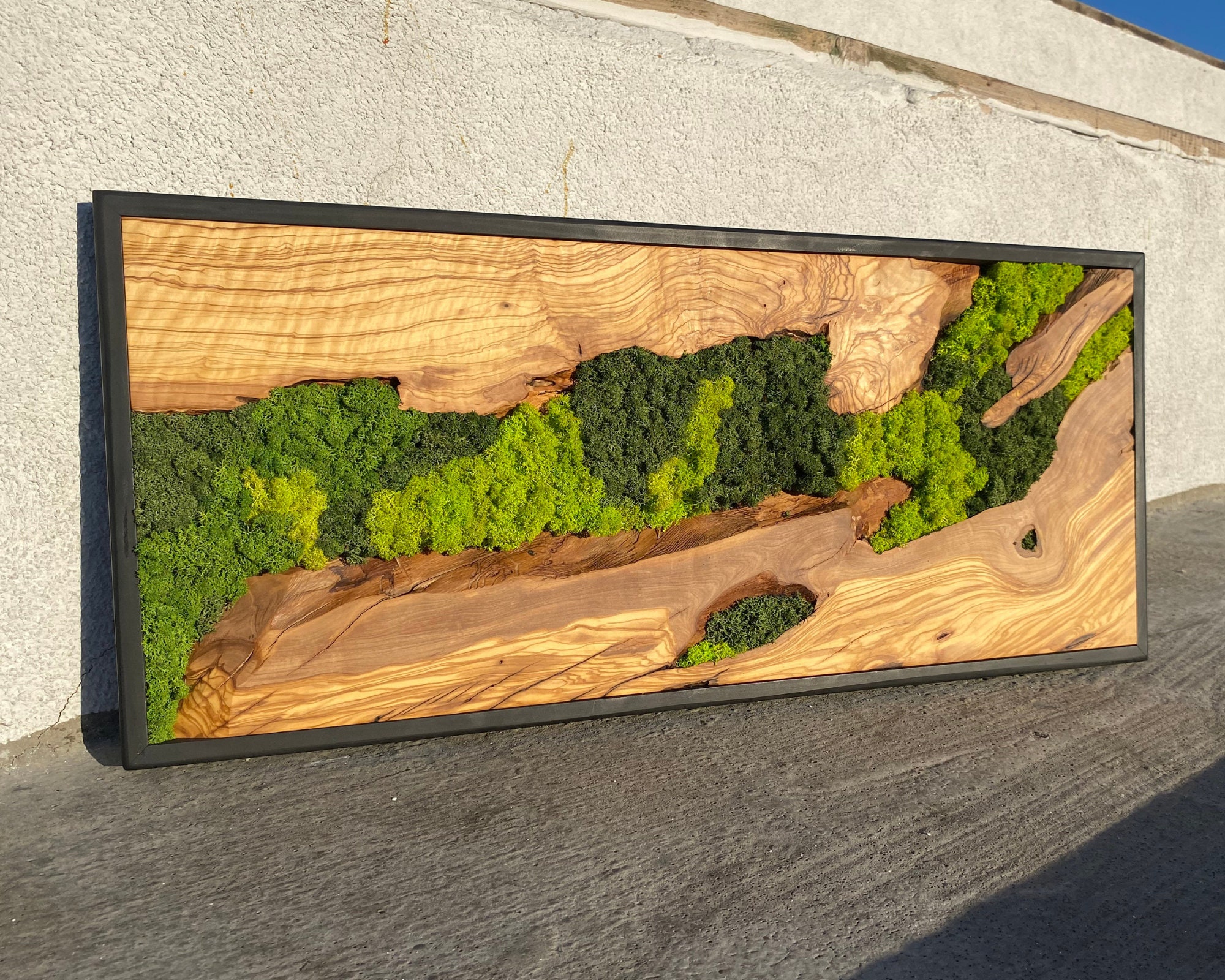 Preserved moss wall art needs no upkeep like watering, sunlight, or fertilizing. It stays the same size, just keep it away from sunlight, water and too much air.