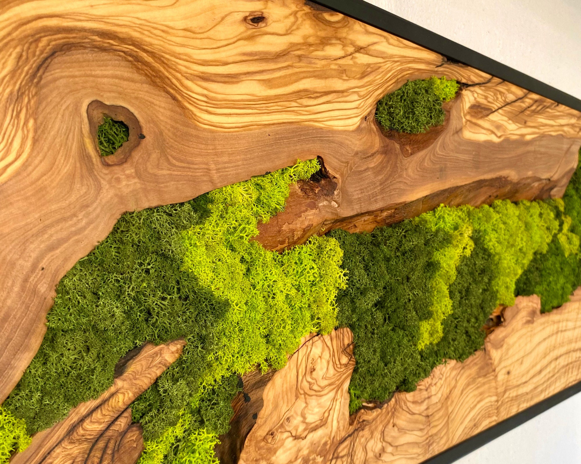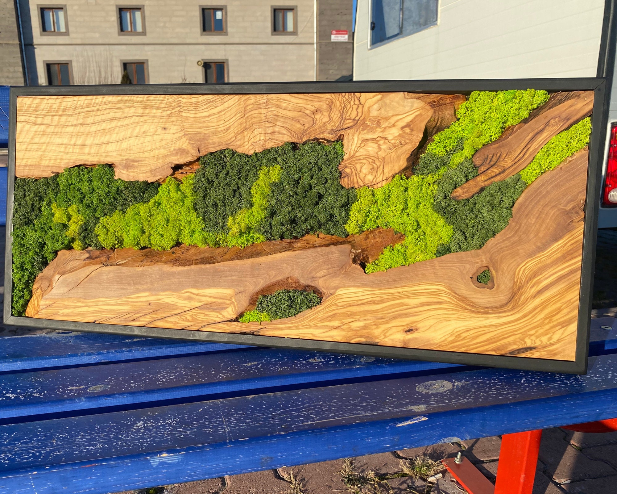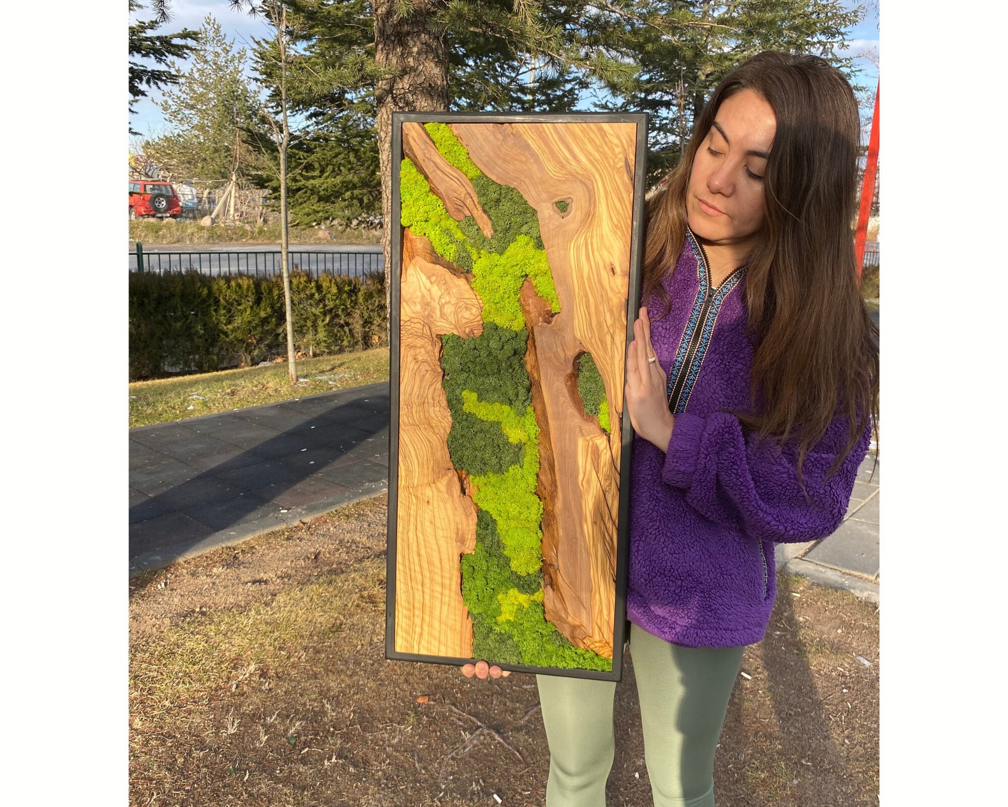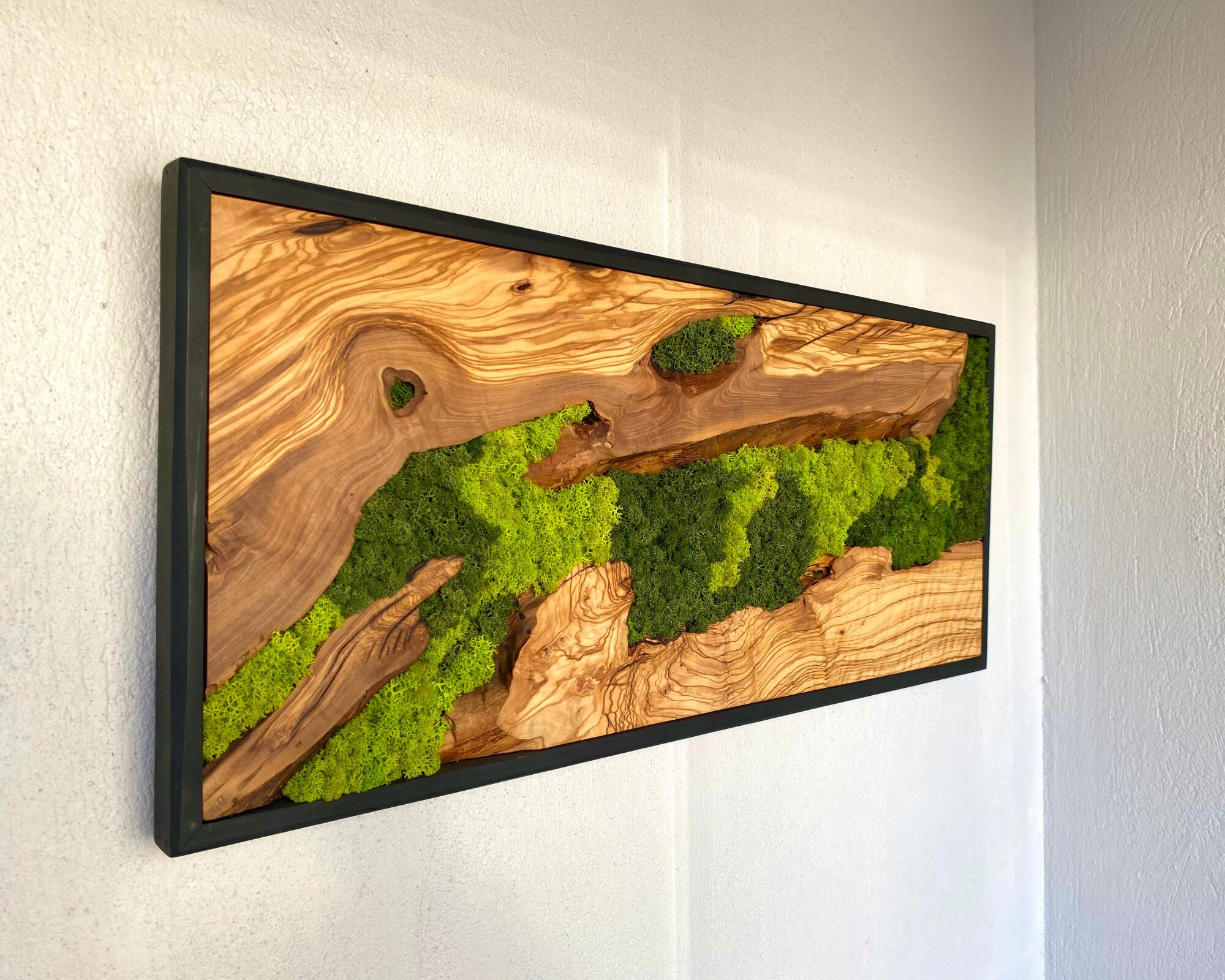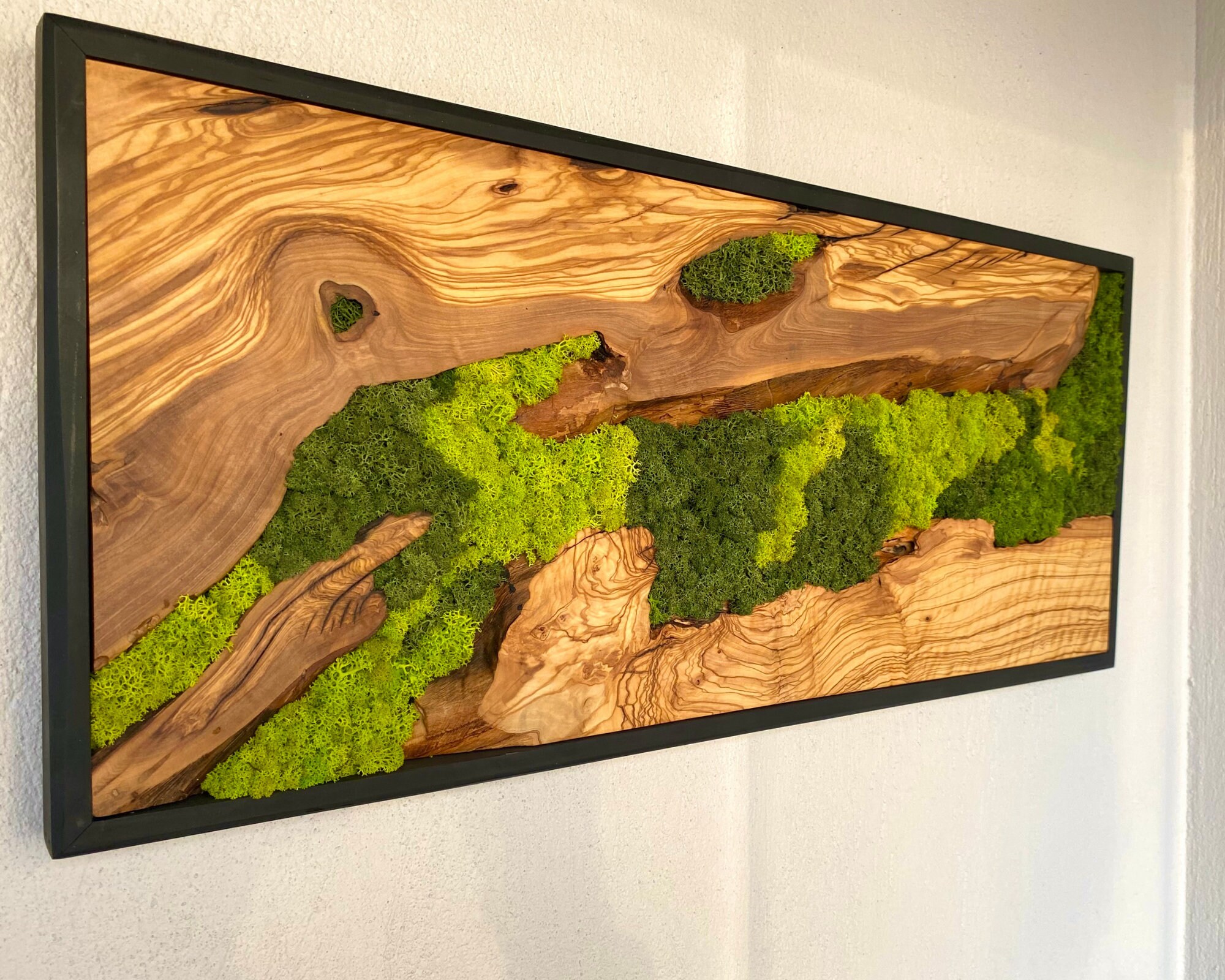 Preserved moss wall art needs no upkeep like watering, sunlight, or fertilizing. It stays the same size, just keep it away from sunlight, water and too much air.