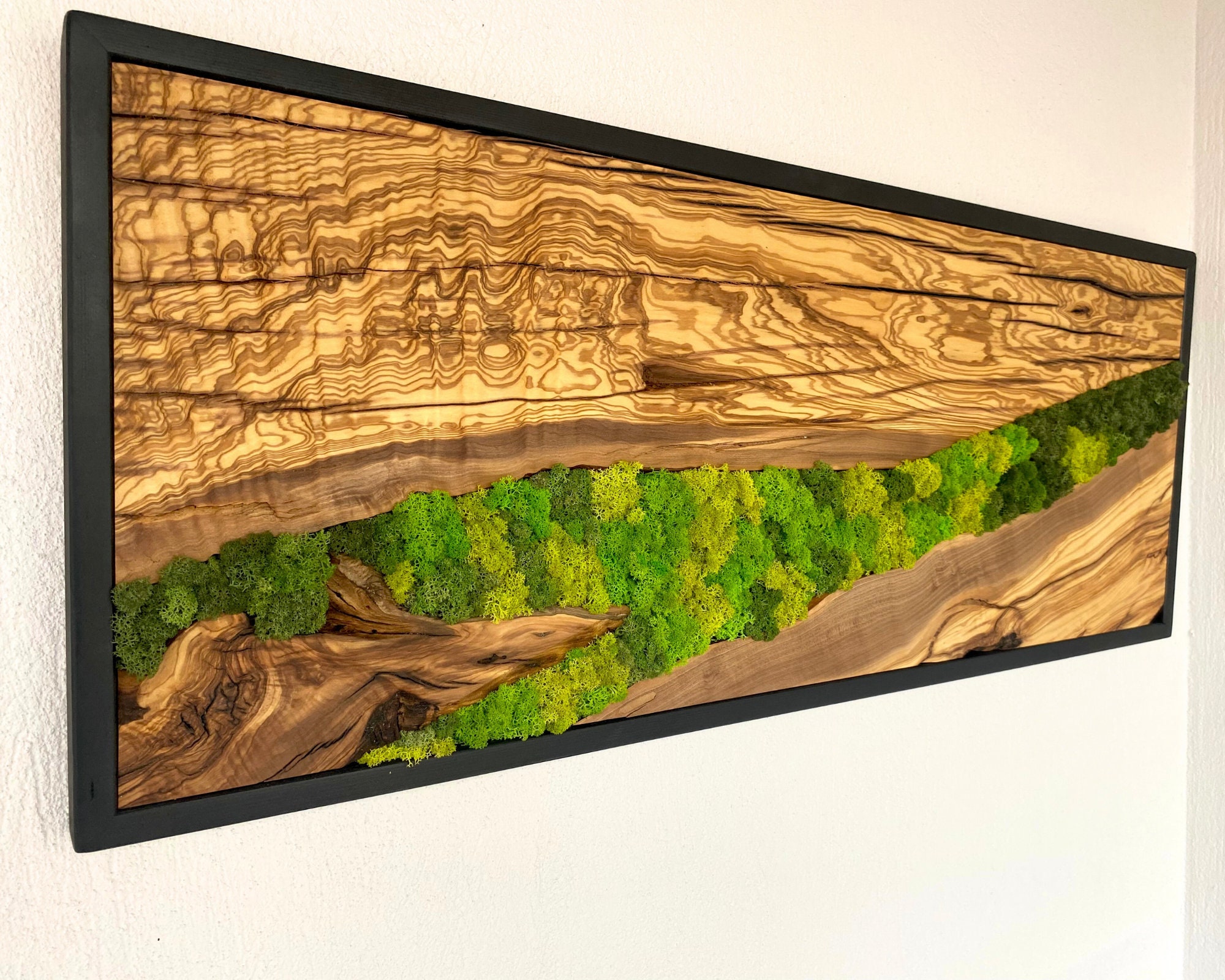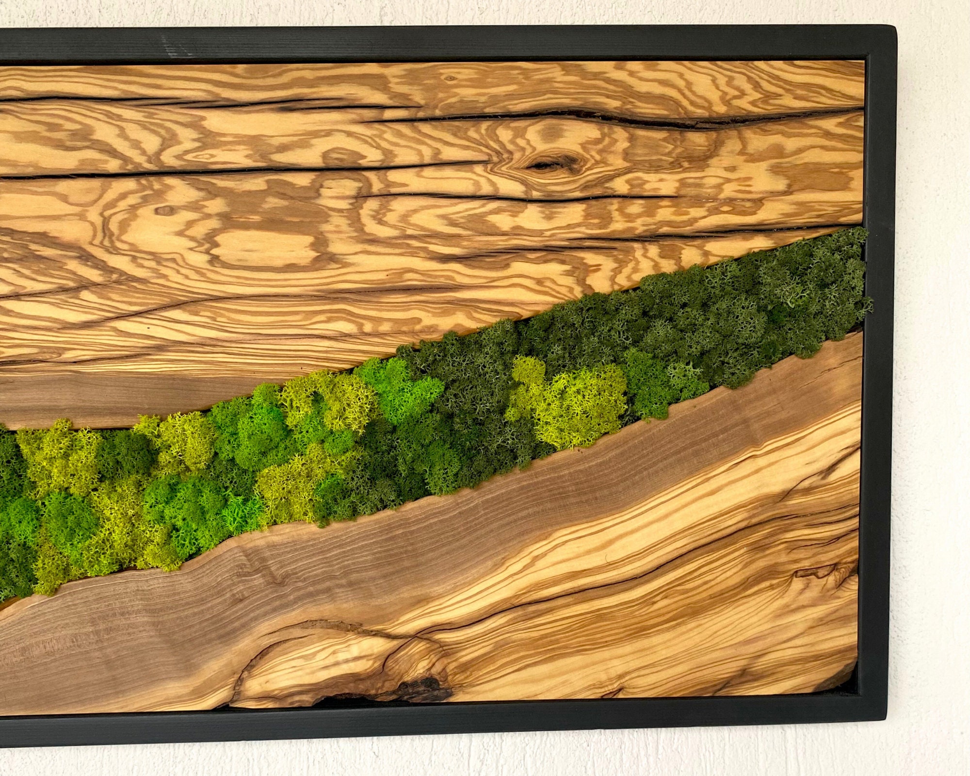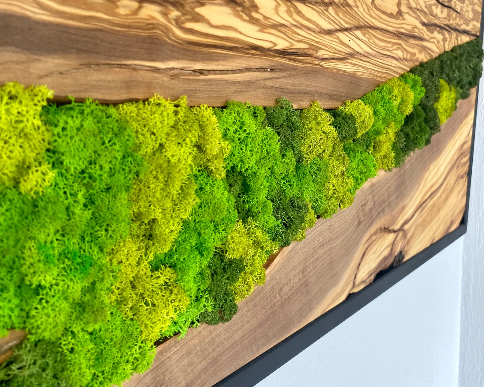 Preserved moss wall art needs no upkeep like watering, sunlight, or fertilizing. It stays the same size, just keep it away from sunlight, water and too much air.