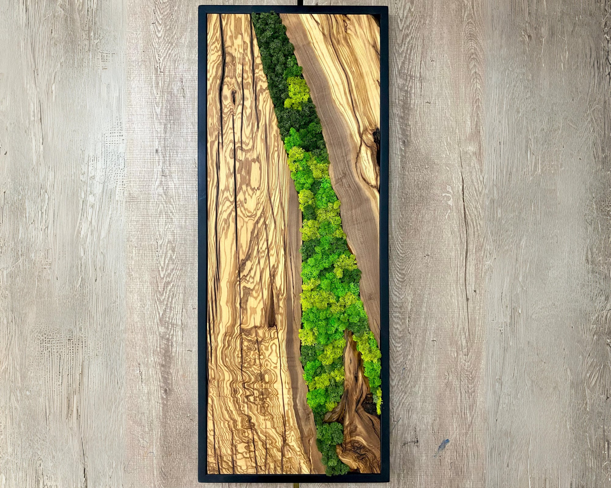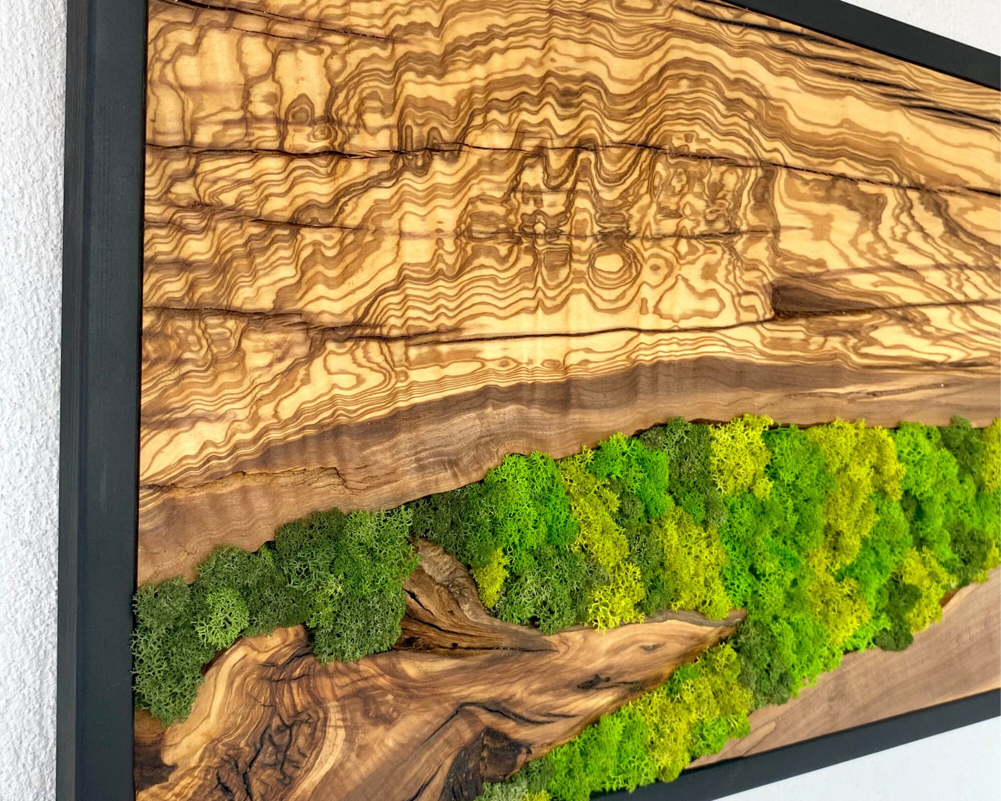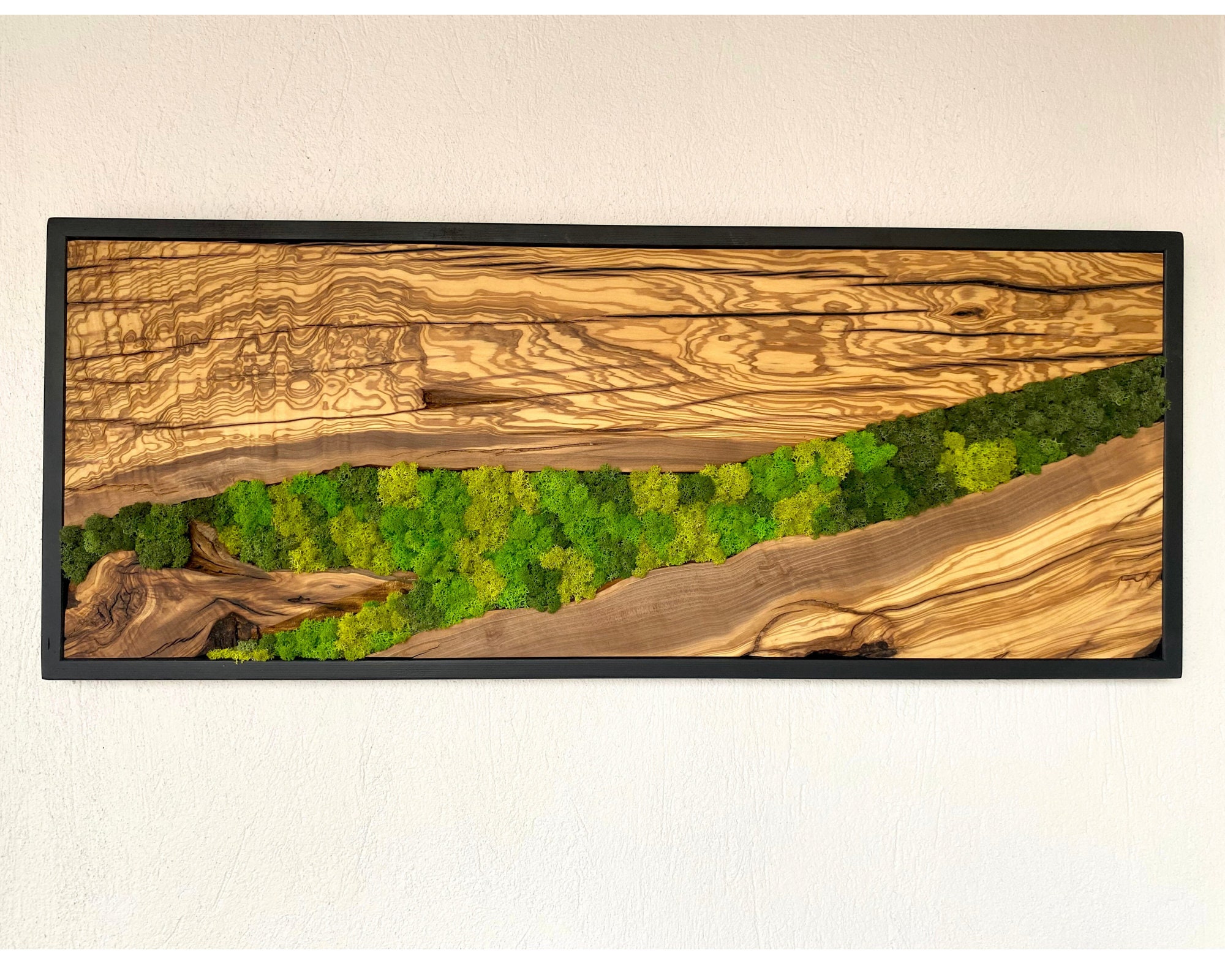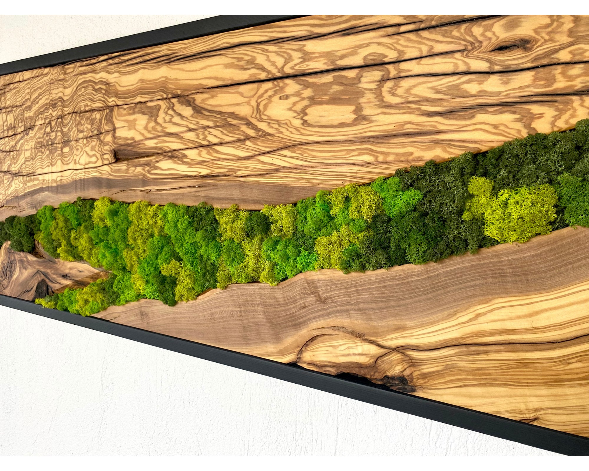Preserved moss wall art needs no upkeep like watering, sunlight, or fertilizing. It stays the same size, just keep it away from sunlight, water and too much air.