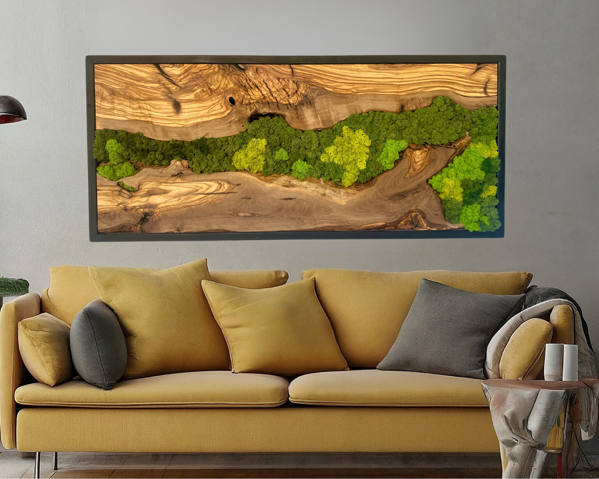 Preserved moss wall art needs no upkeep like watering, sunlight, or fertilizing. It stays the same size, just keep it away from sunlight, water and too much air.