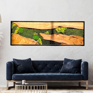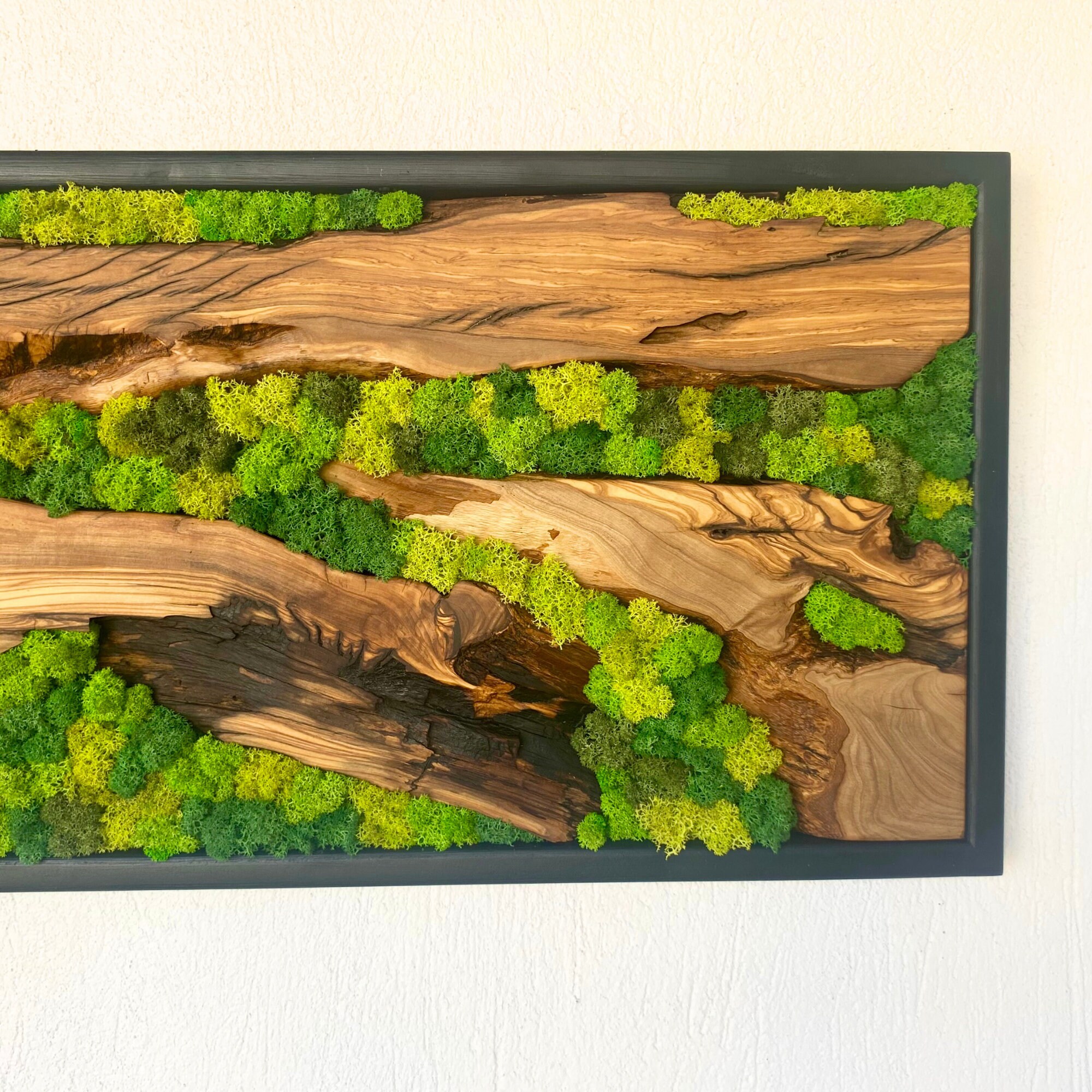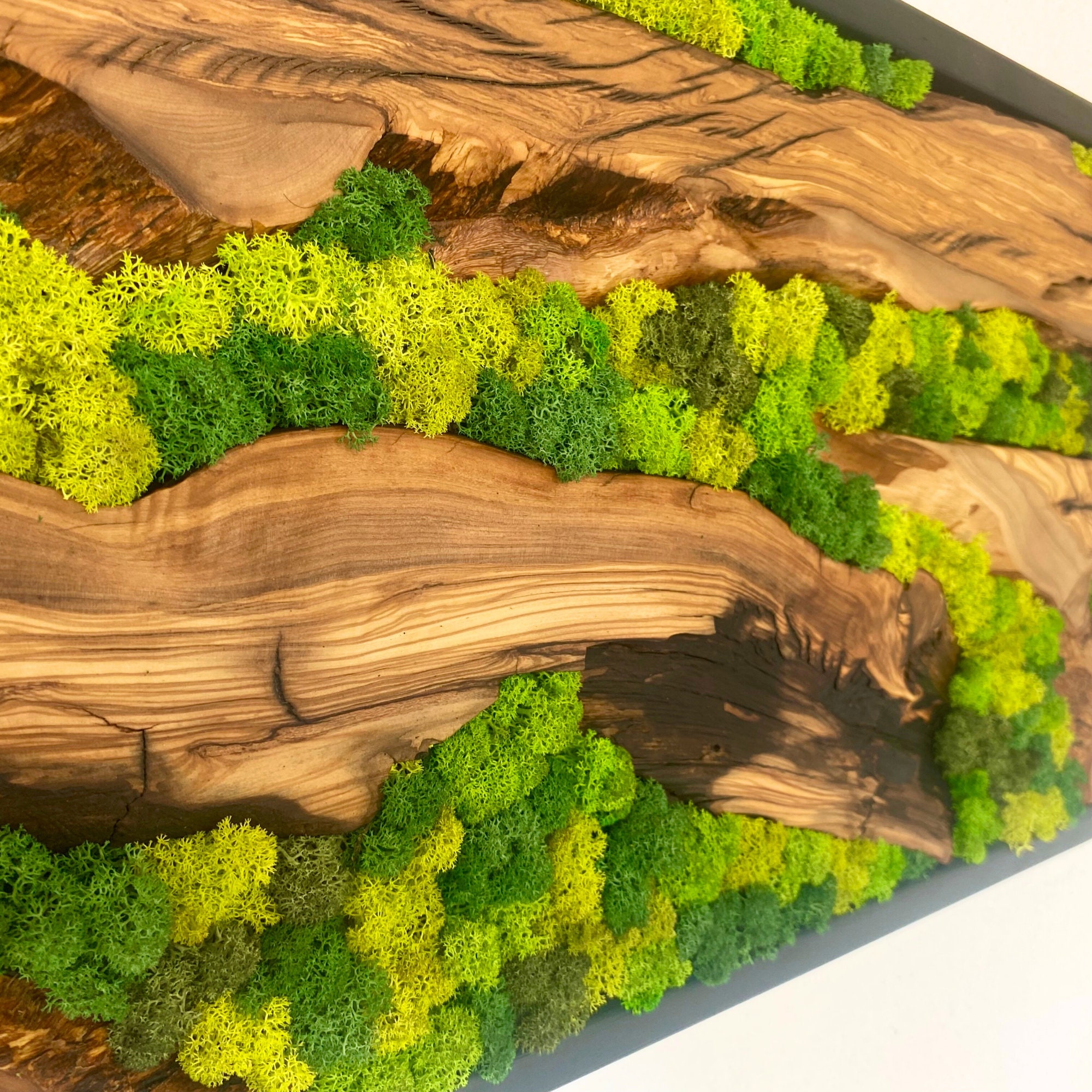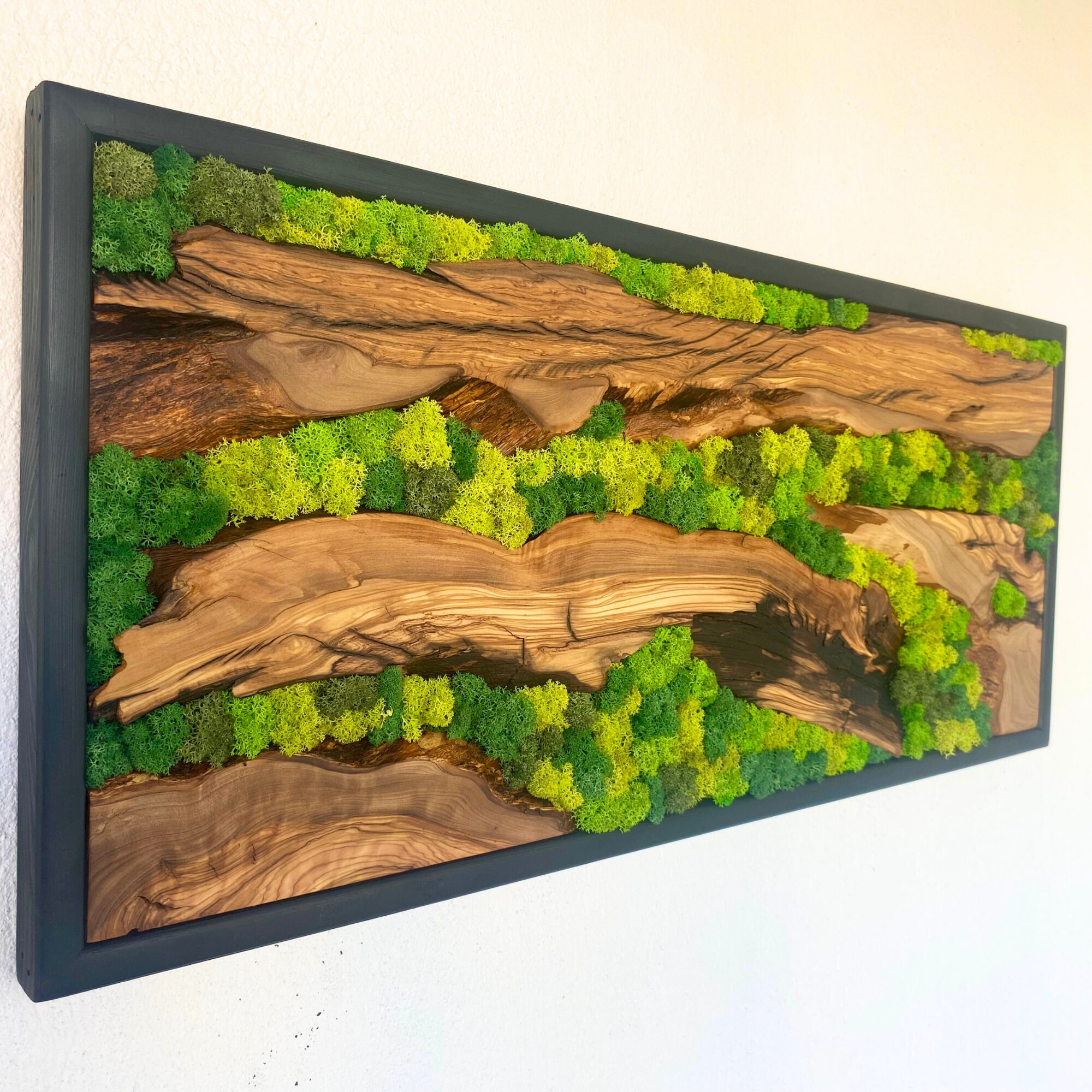 Preserved moss wall art needs no upkeep like watering, sunlight, or fertilizing. It stays the same size, just keep it away from sunlight, water and too much air.