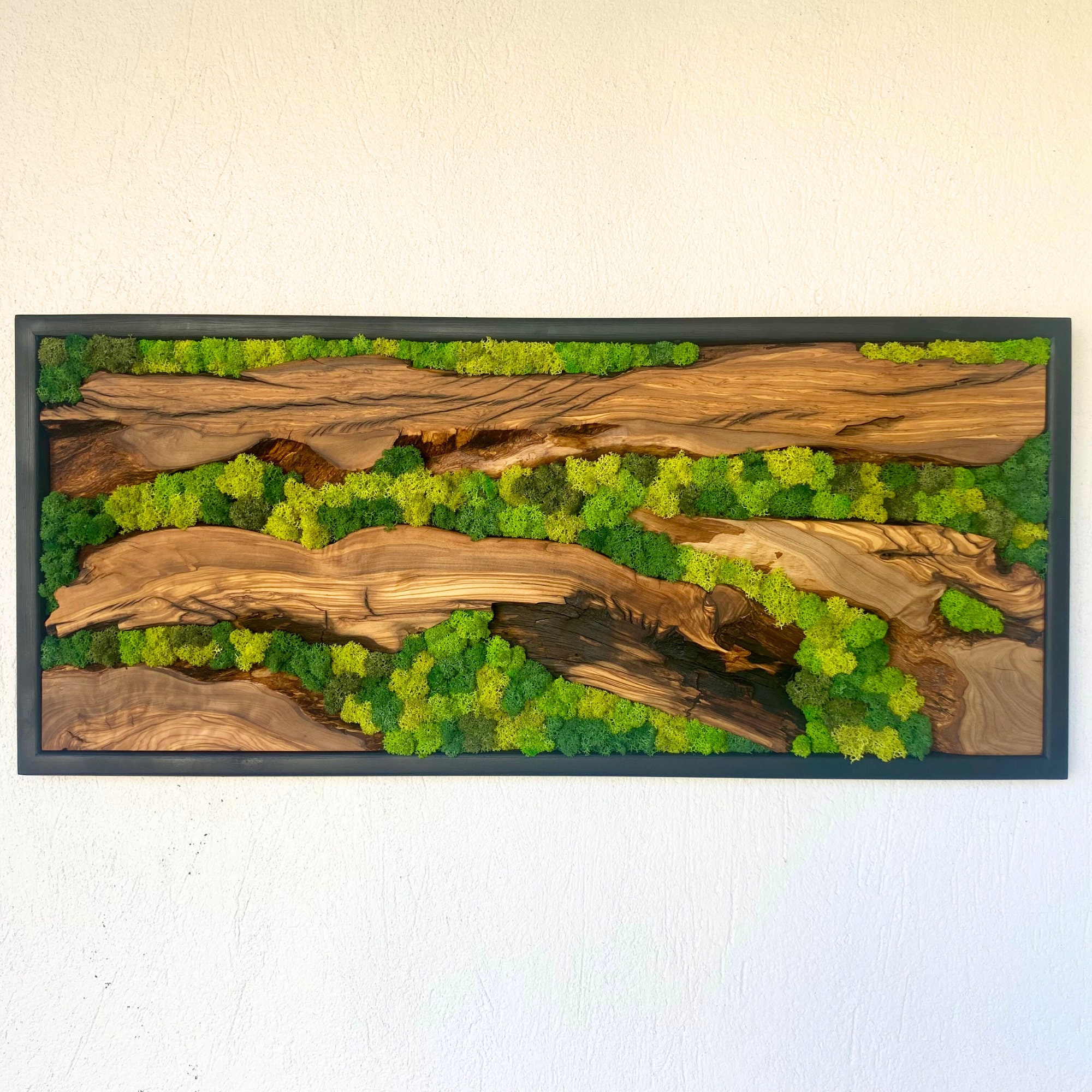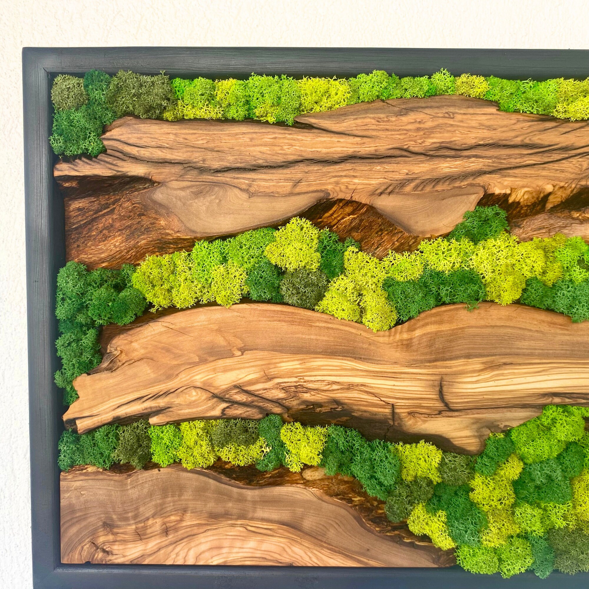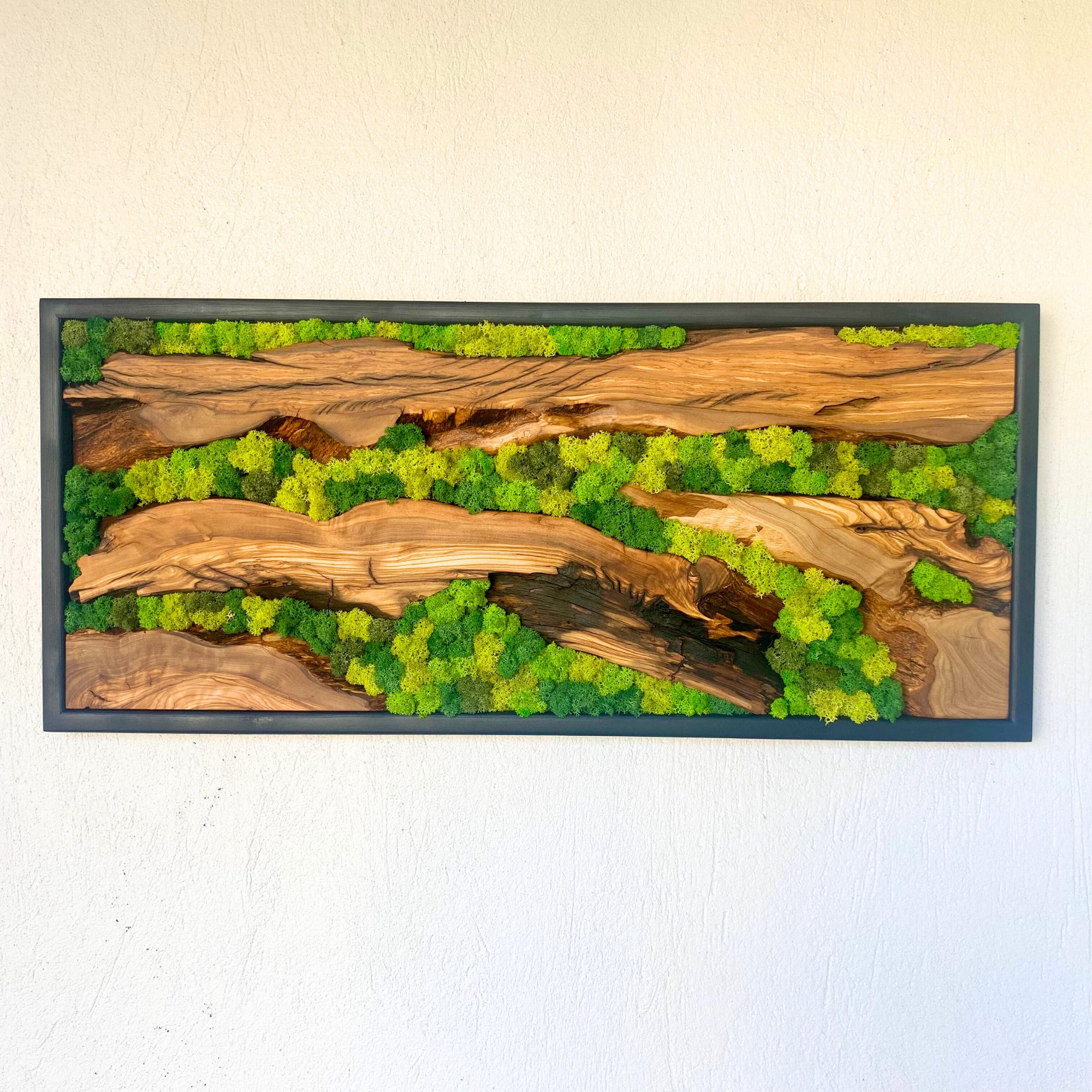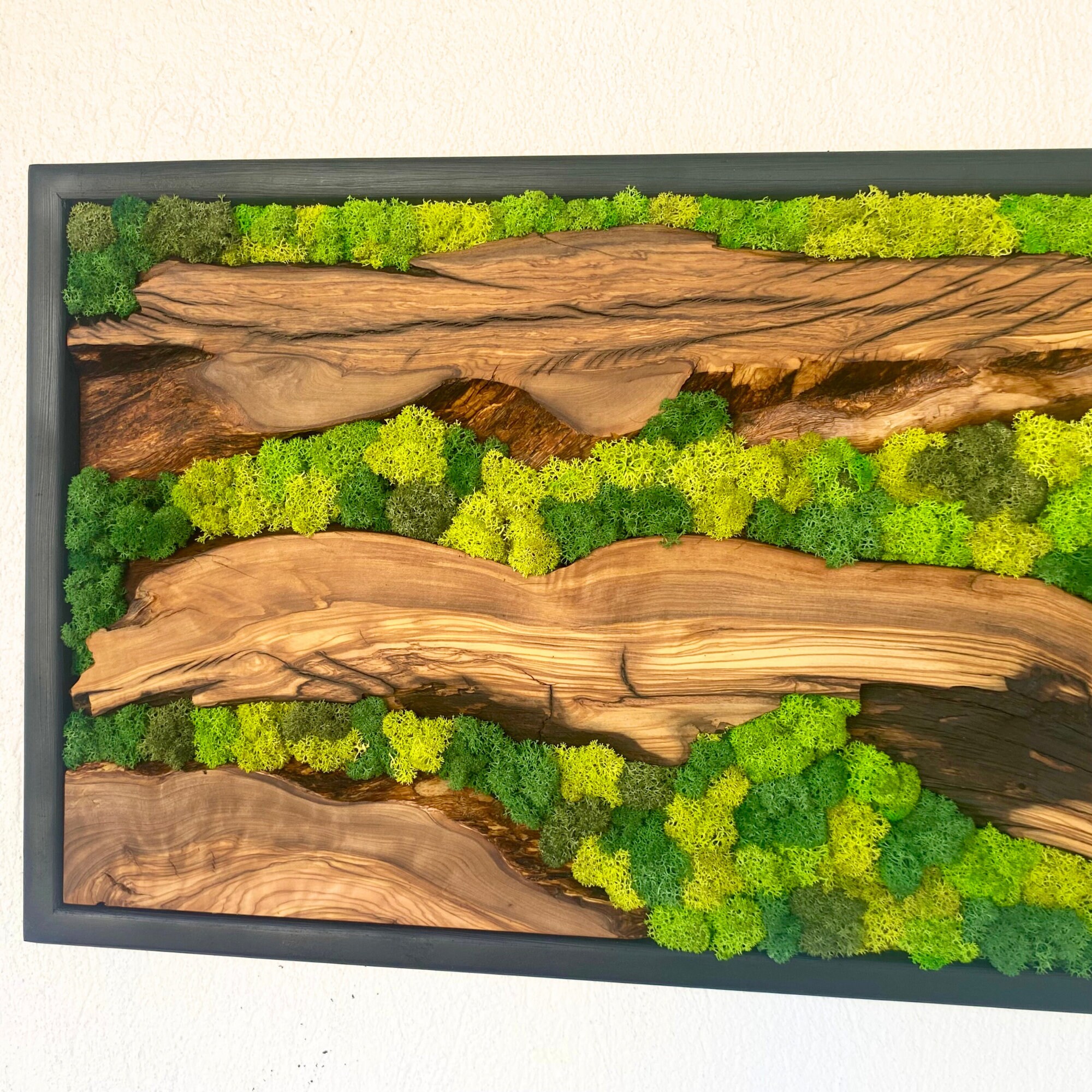 Preserved moss wall art needs no upkeep like watering, sunlight, or fertilizing. It stays the same size, just keep it away from sunlight, water and too much air.