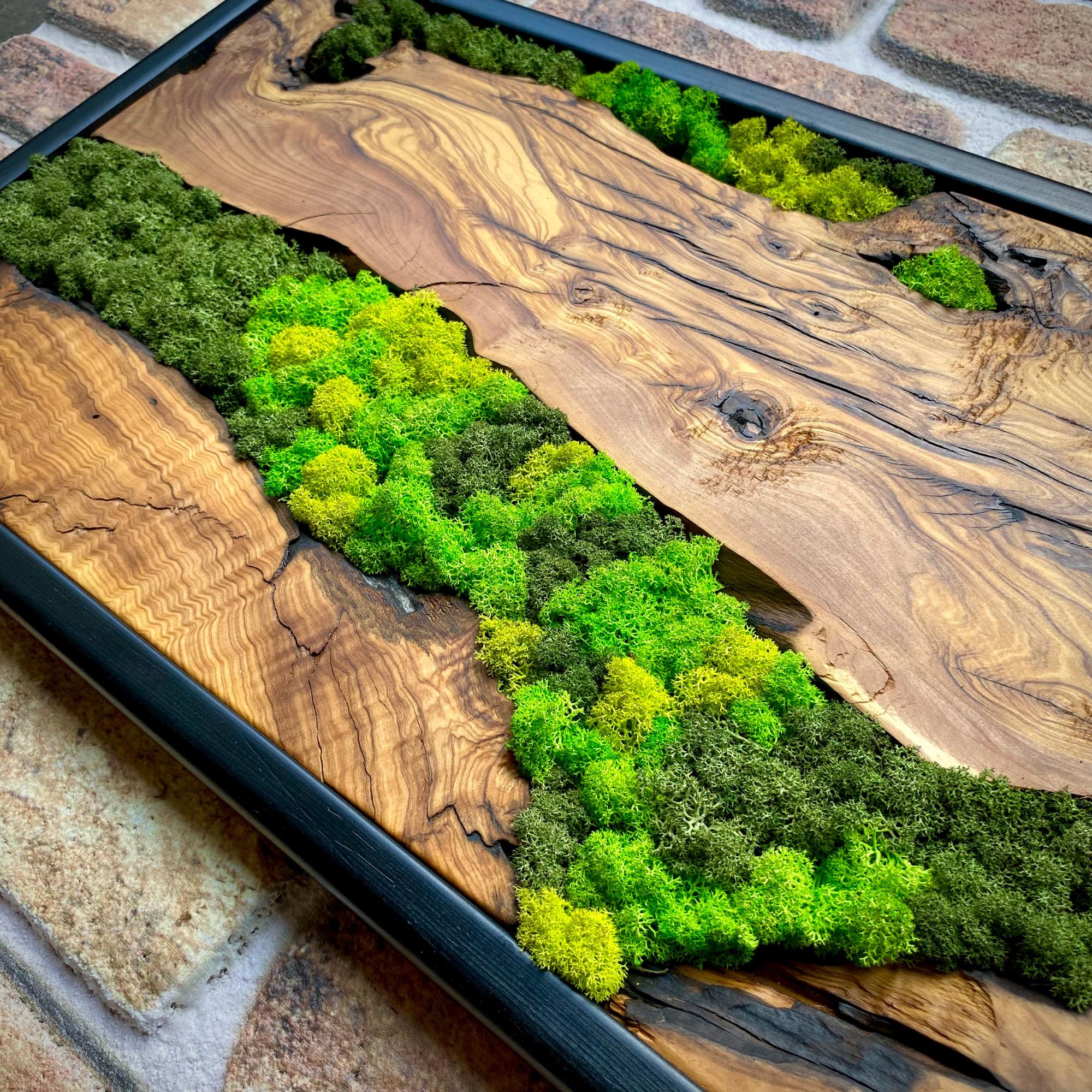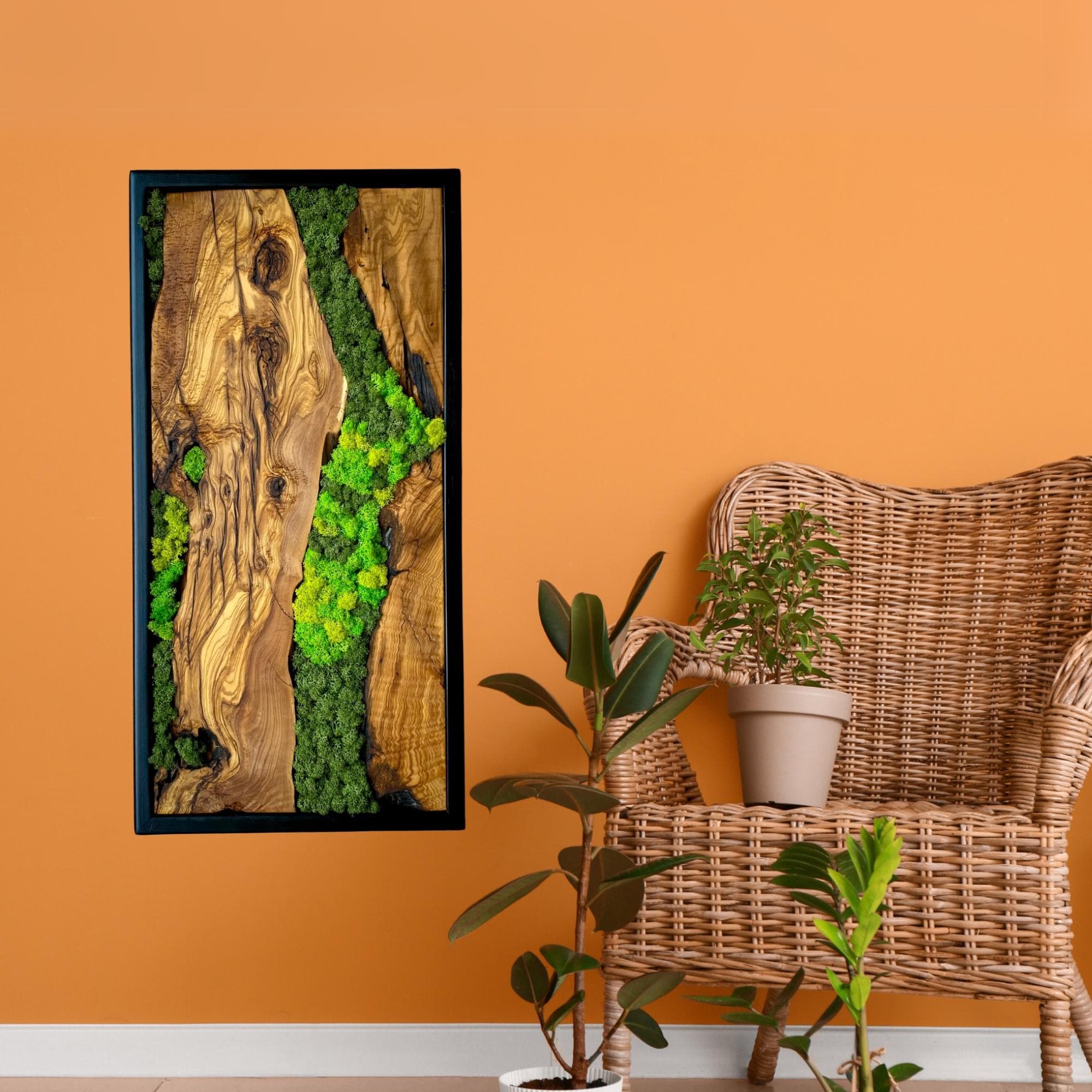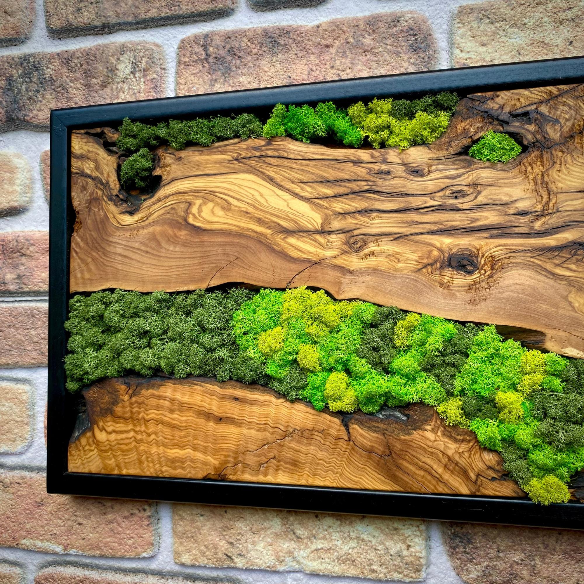 Preserved moss wall art needs no upkeep like watering, sunlight, or fertilizing. It stays the same size, just keep it away from sunlight, water and too much air.