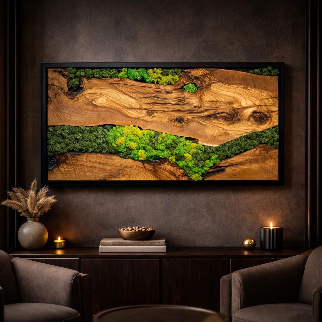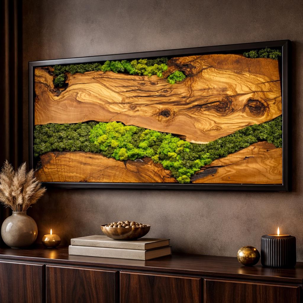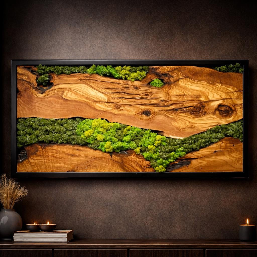 Handmade Olive Wood Moss Wall Art: Nature Inspired Farmhouse Decor