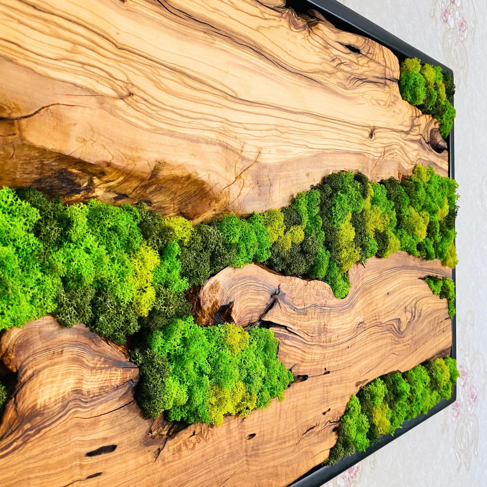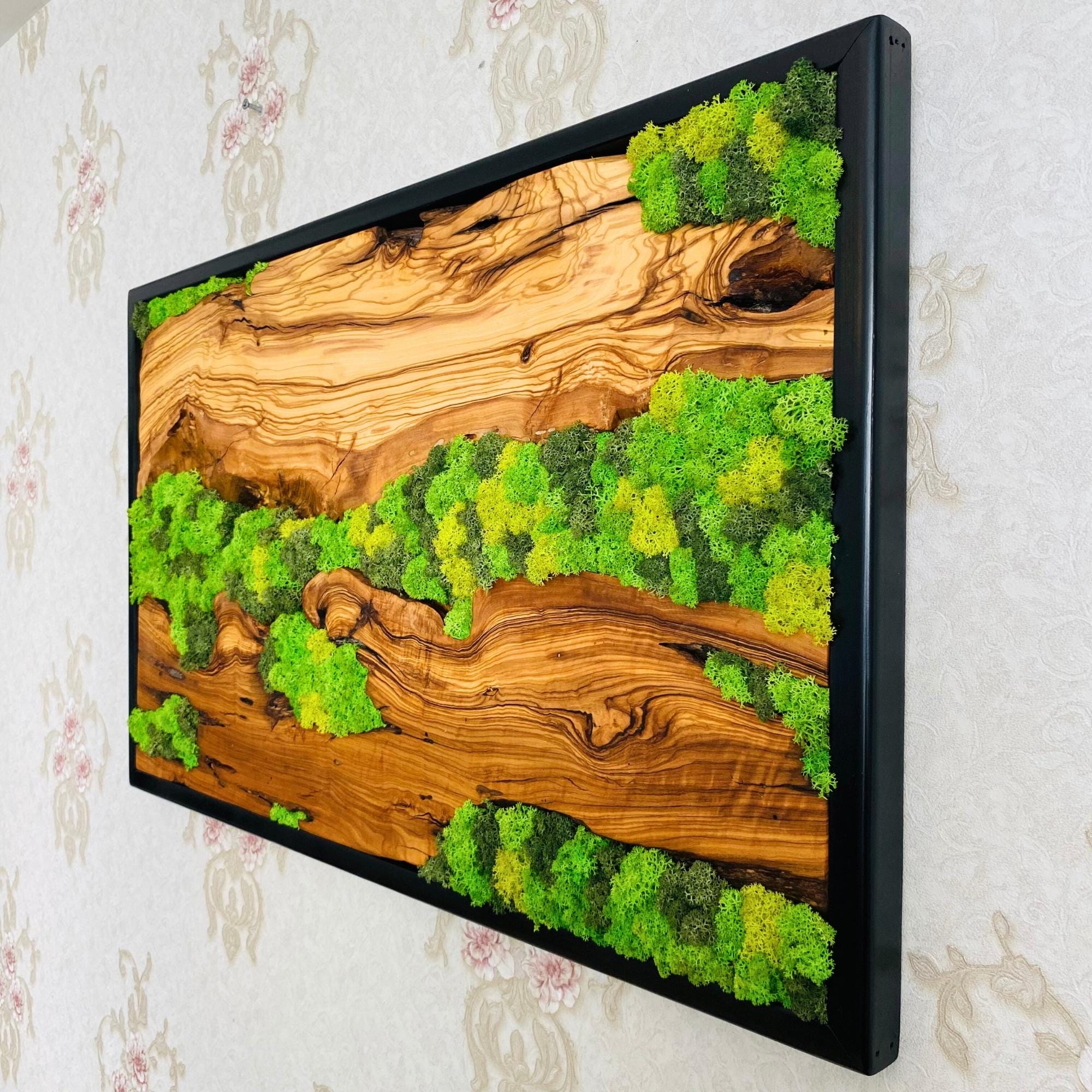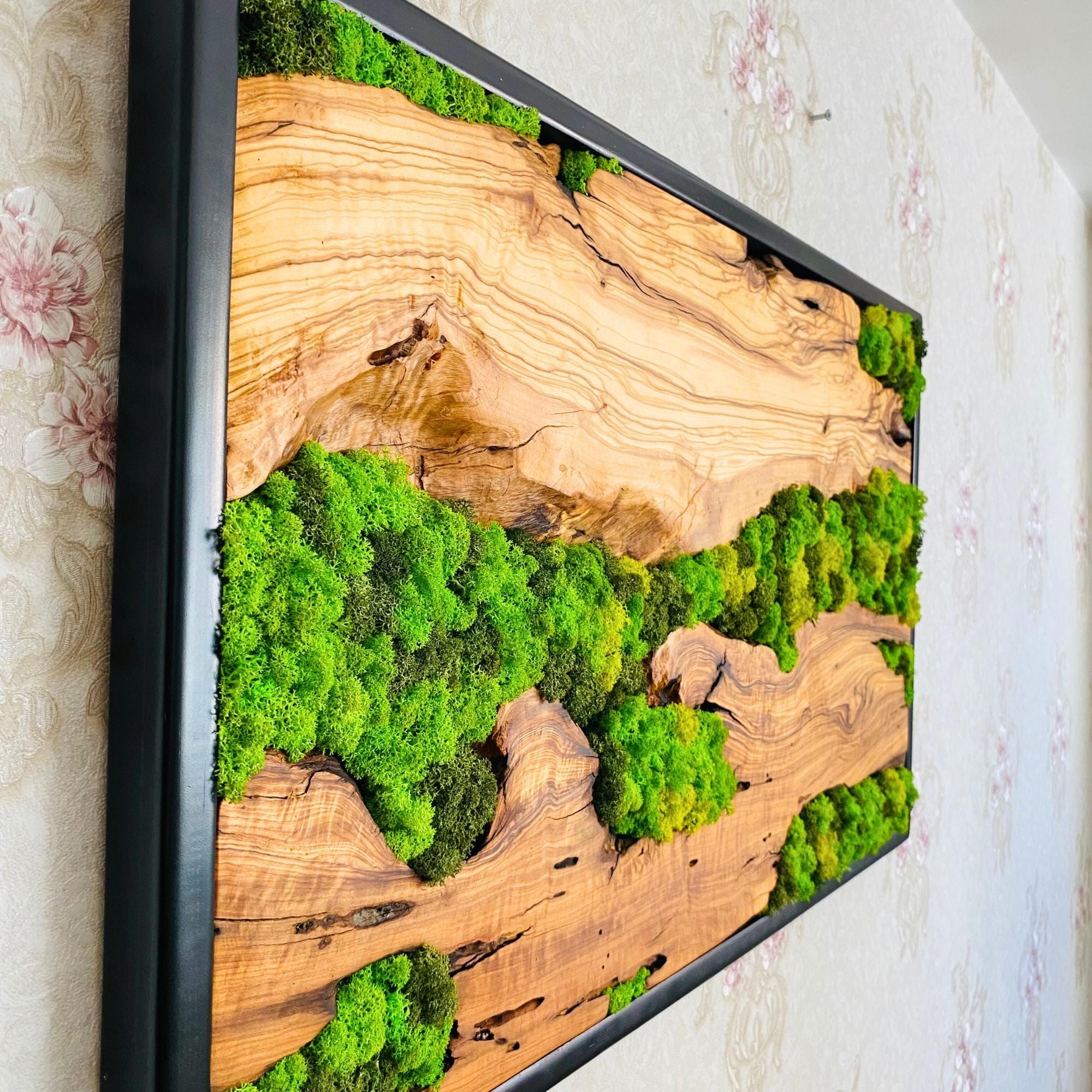 Preserved moss wall art needs no upkeep like watering, sunlight, or fertilizing. It stays the same size, just keep it away from sunlight, water and too much air.