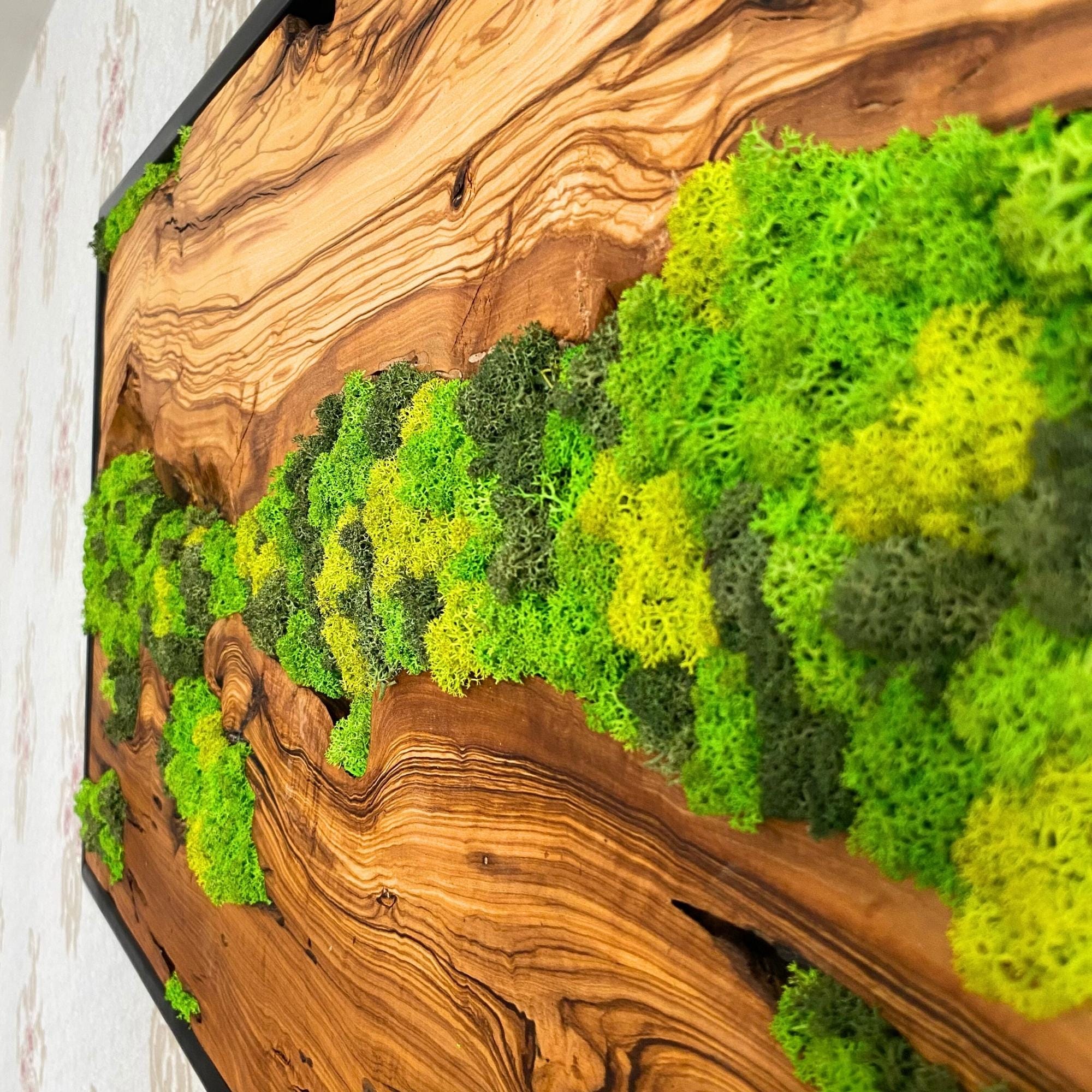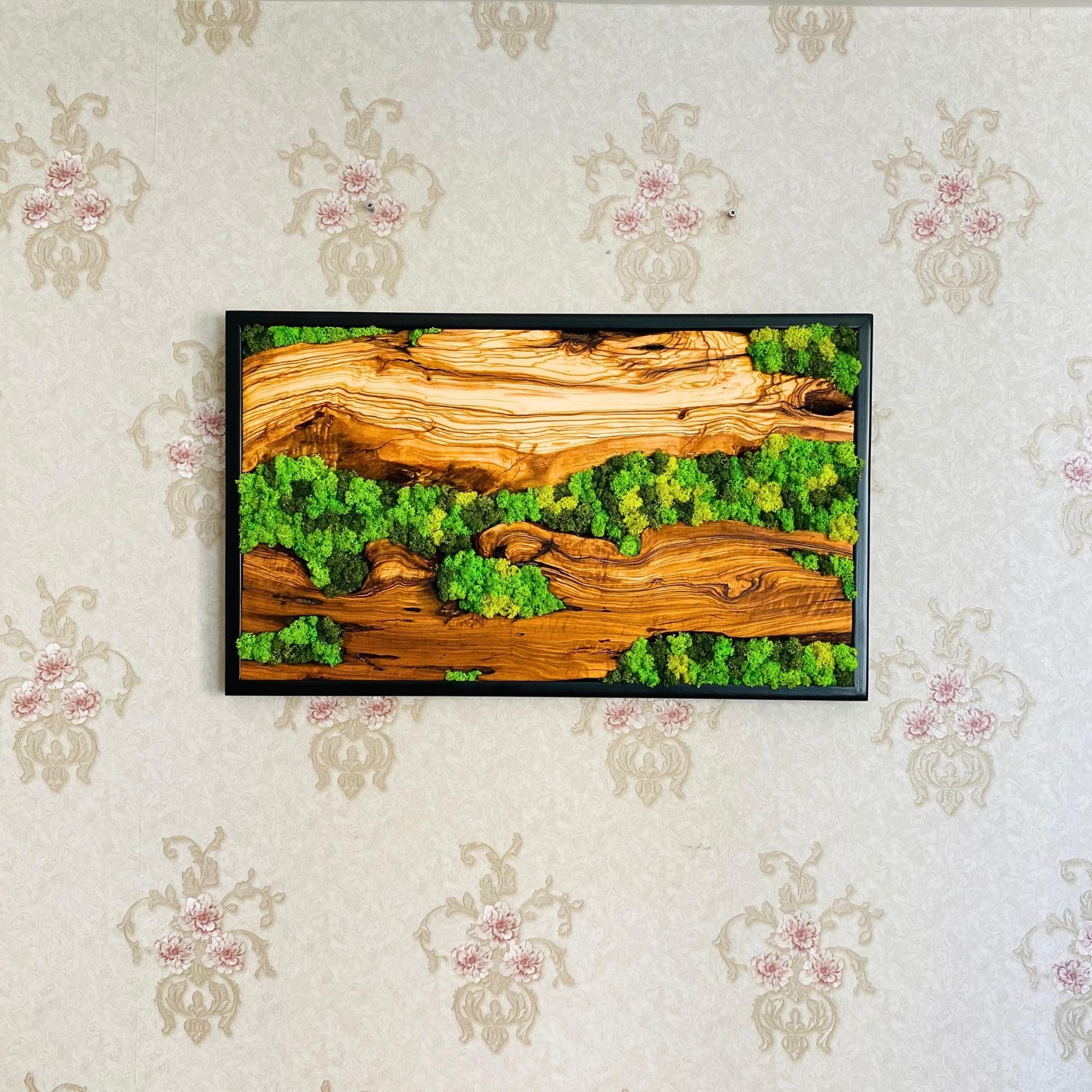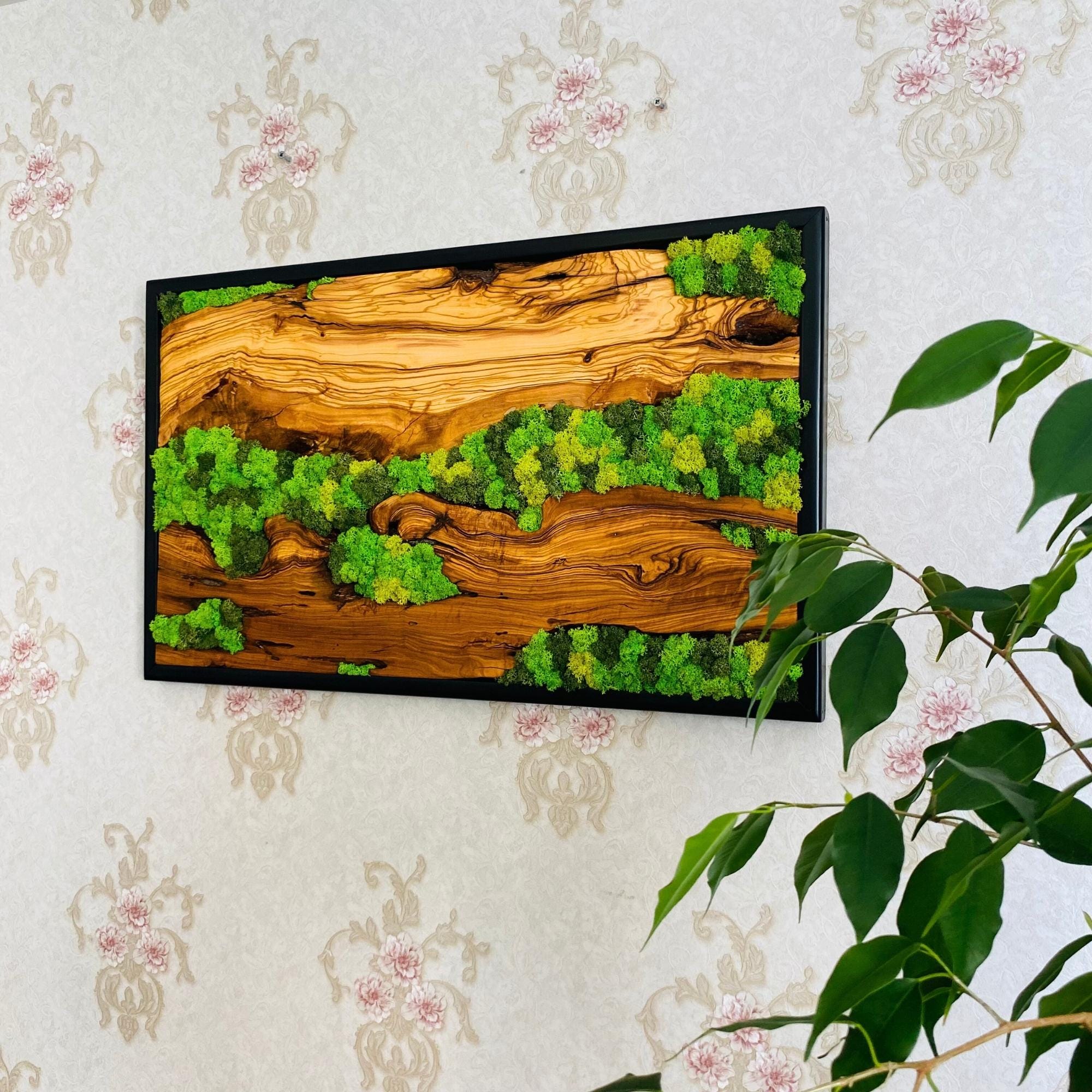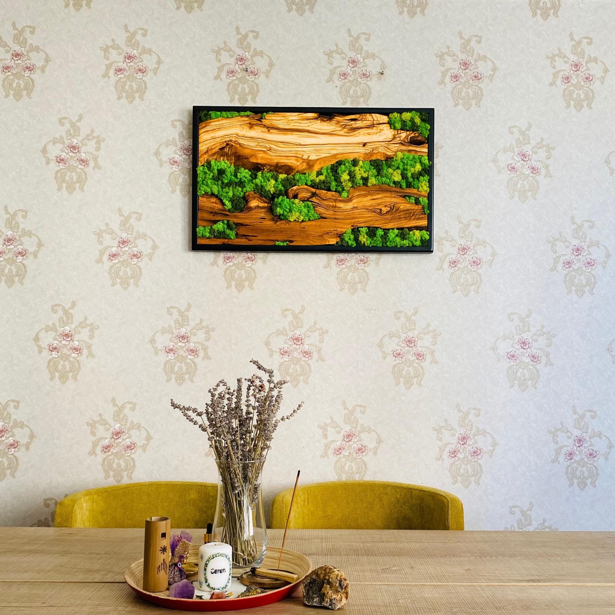 Preserved moss wall art needs no upkeep like watering, sunlight, or fertilizing. It stays the same size, just keep it away from sunlight, water and too much air.