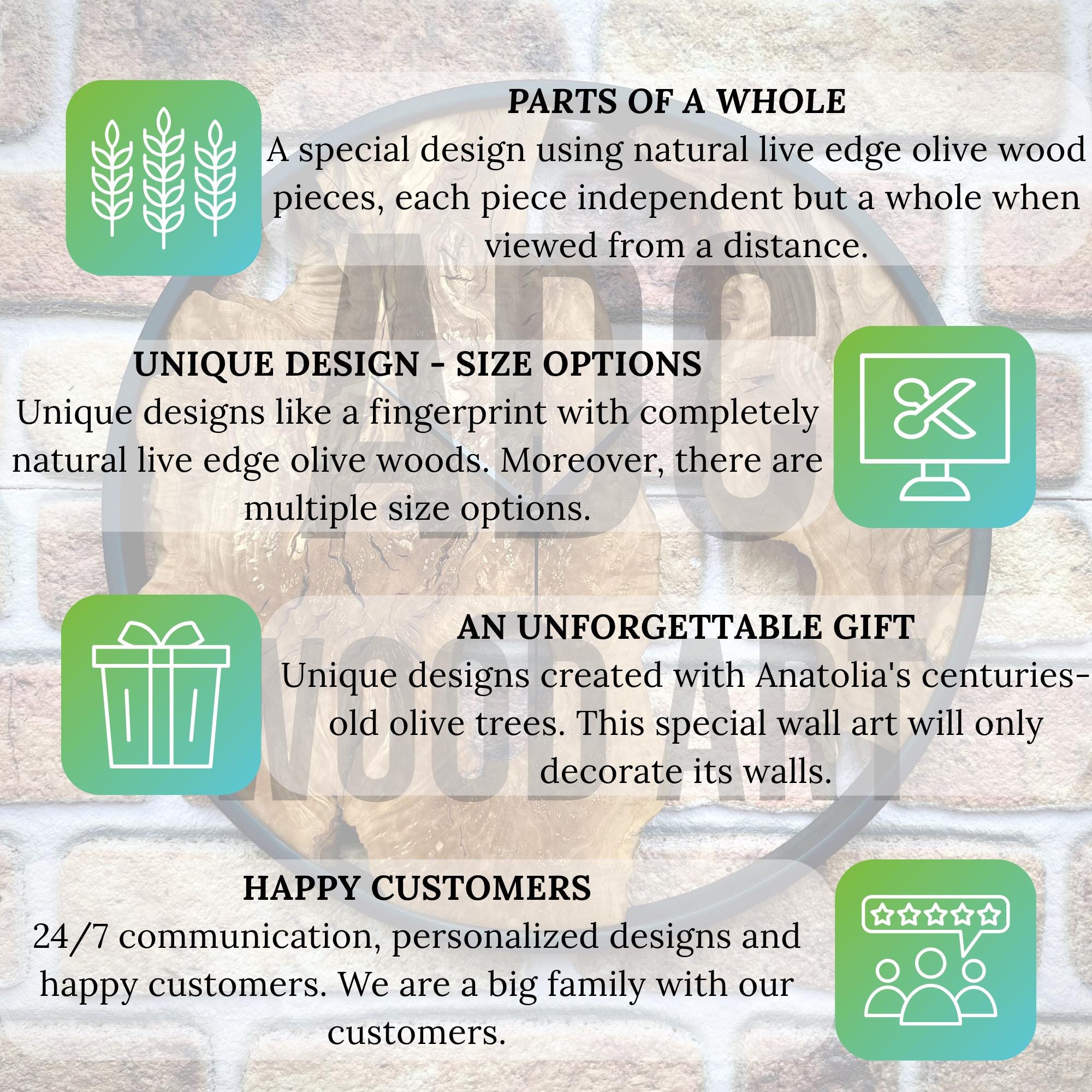 All my wooden wall clock and moss wall art products will be sent in a special case to protect against breakage. If you would like a gift package, please let me know. If you want, I can put any note you want inside the box. Please do not hesitate to contact me.
