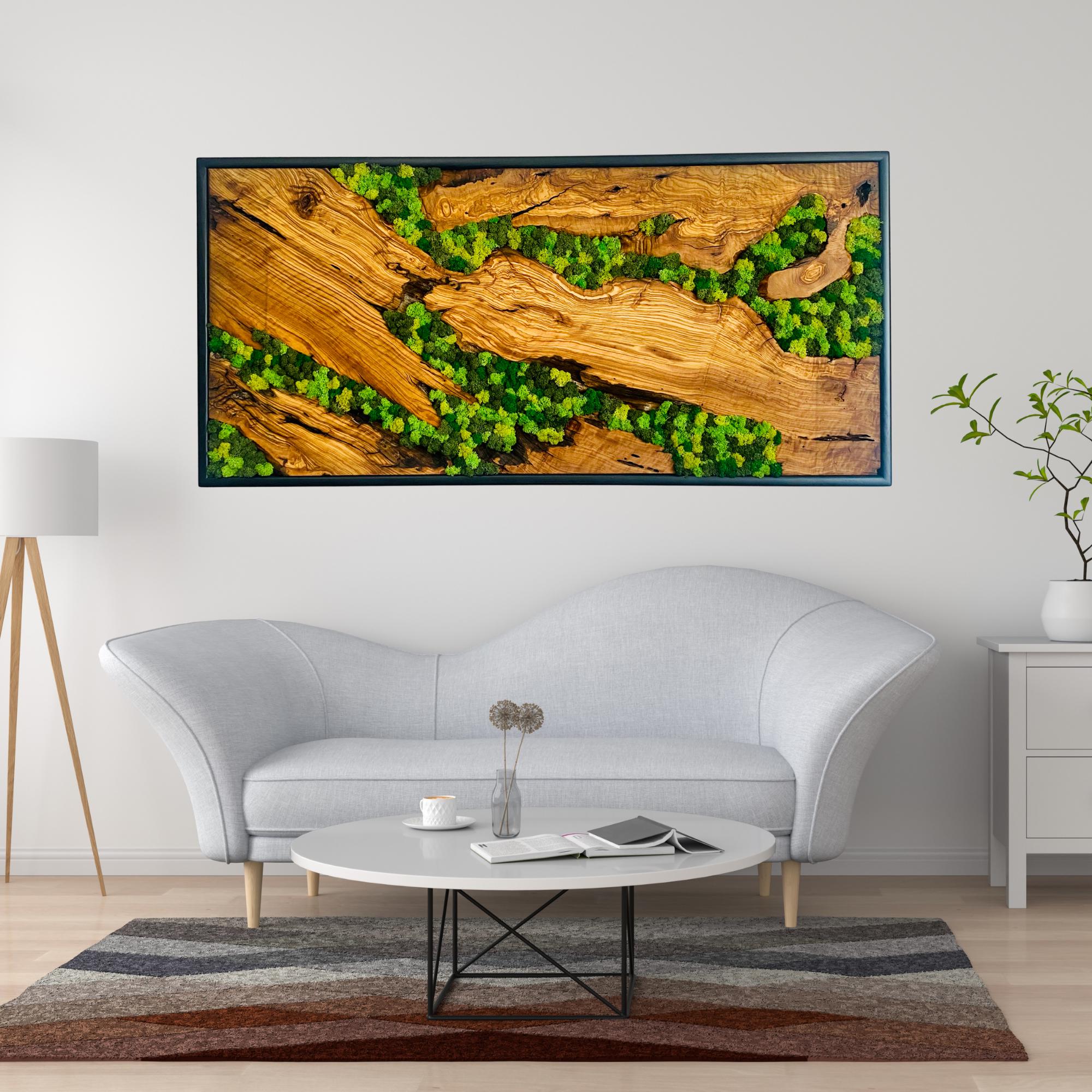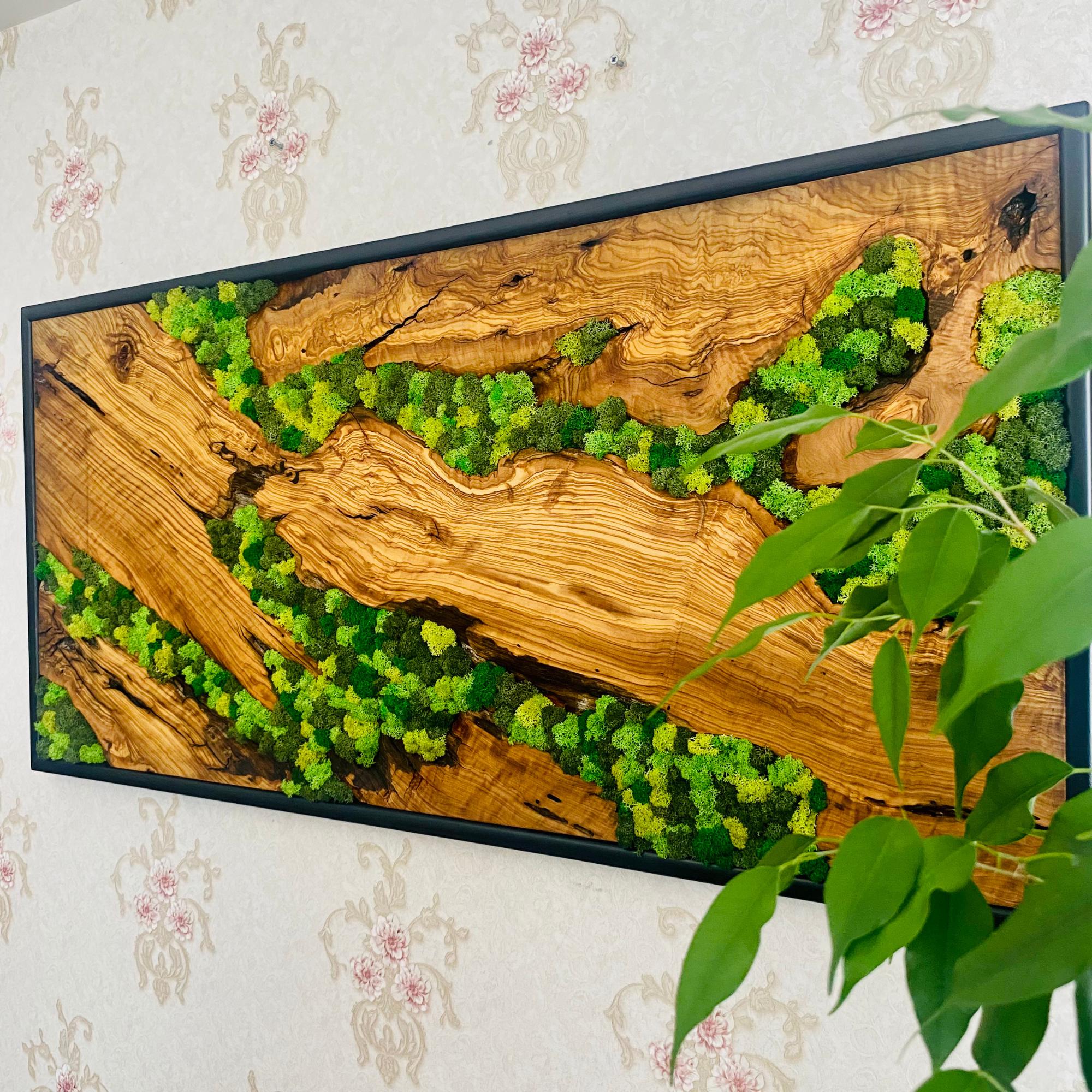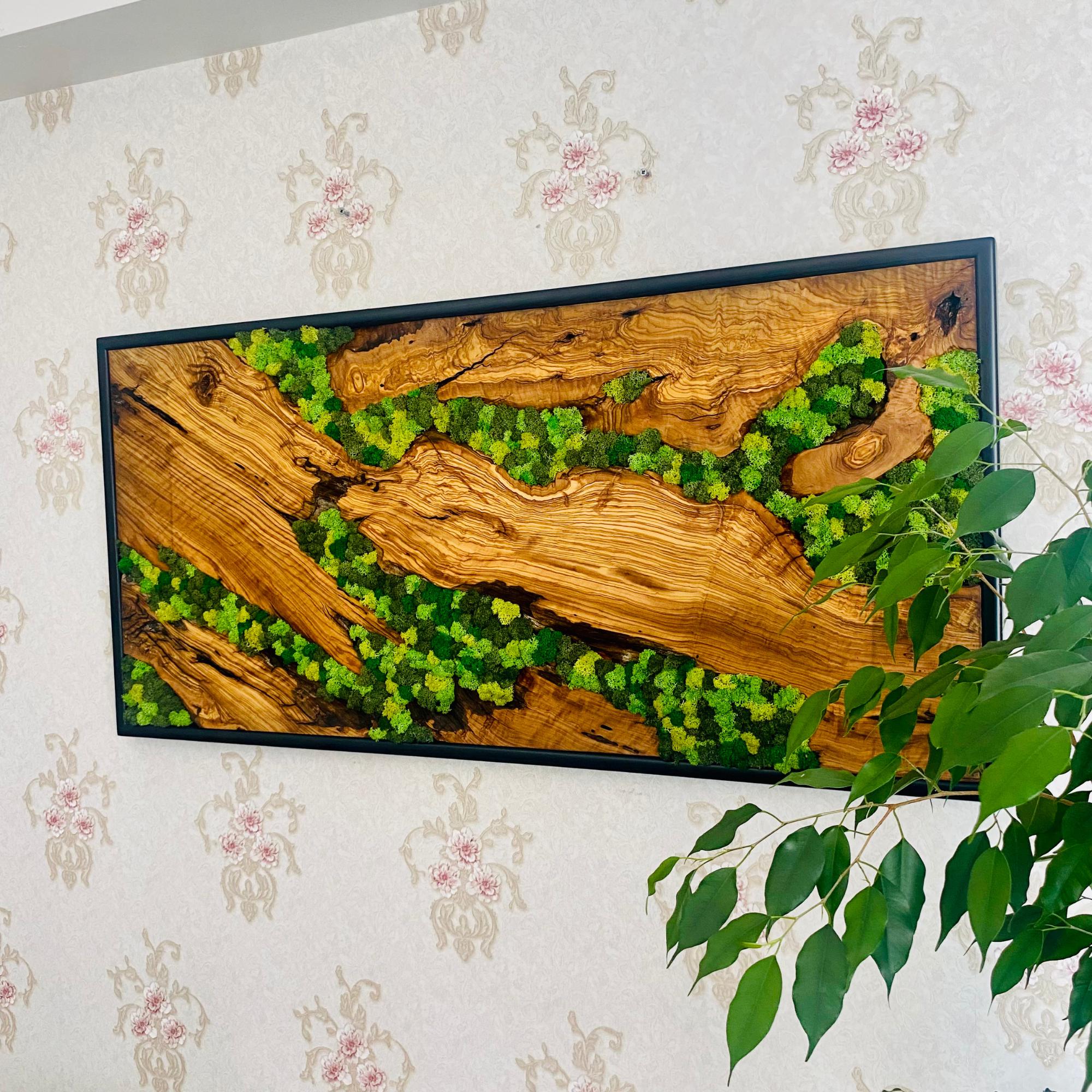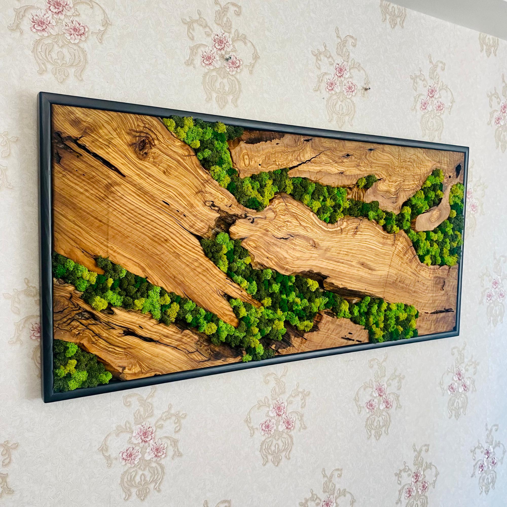 Preserved moss wall art needs no upkeep like watering, sunlight, or fertilizing. It stays the same size, just keep it away from sunlight, water and too much air.