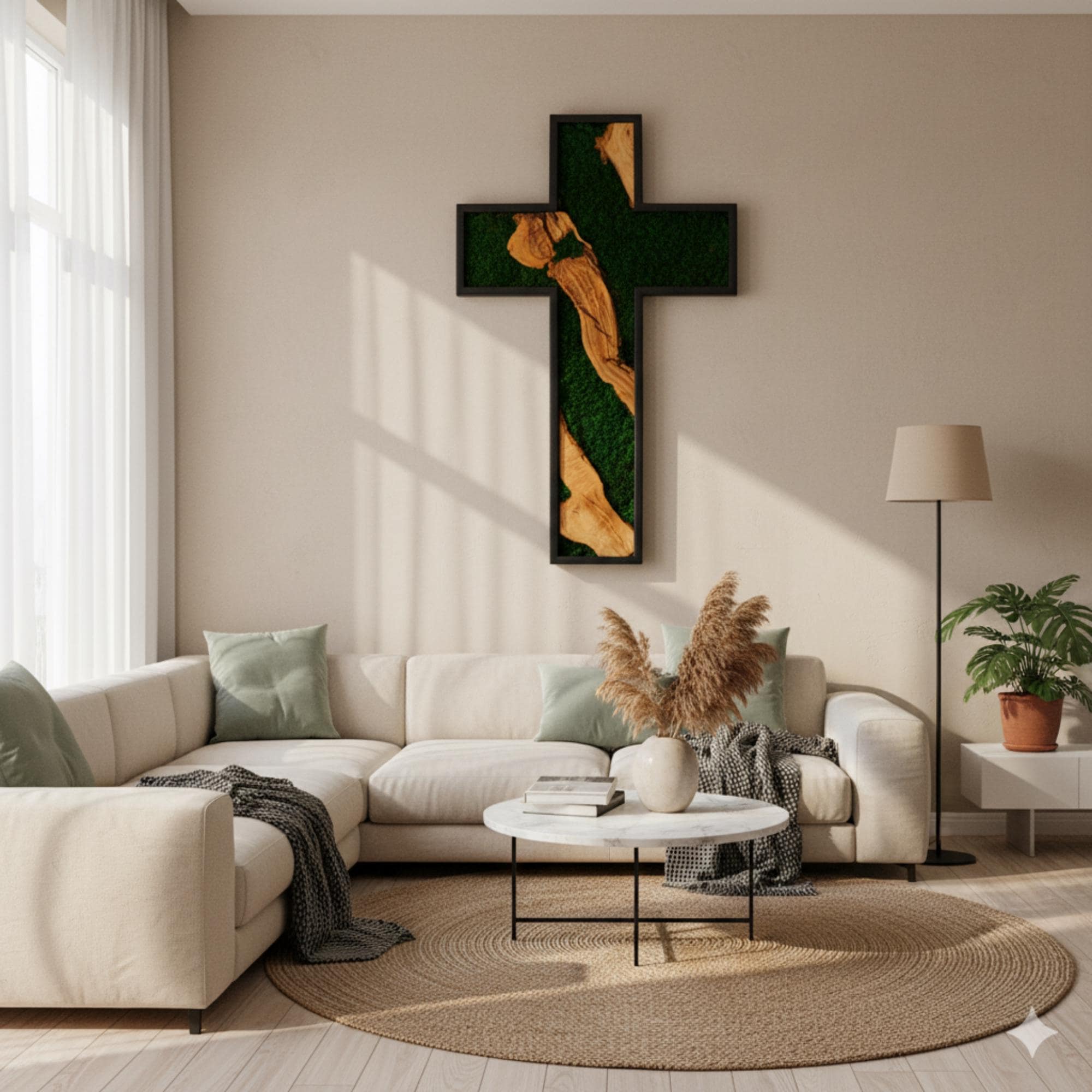 Preserved moss wall art needs no upkeep like watering, sunlight, or fertilizing. It stays the same size, just keep it away from sunlight, water and too much air.