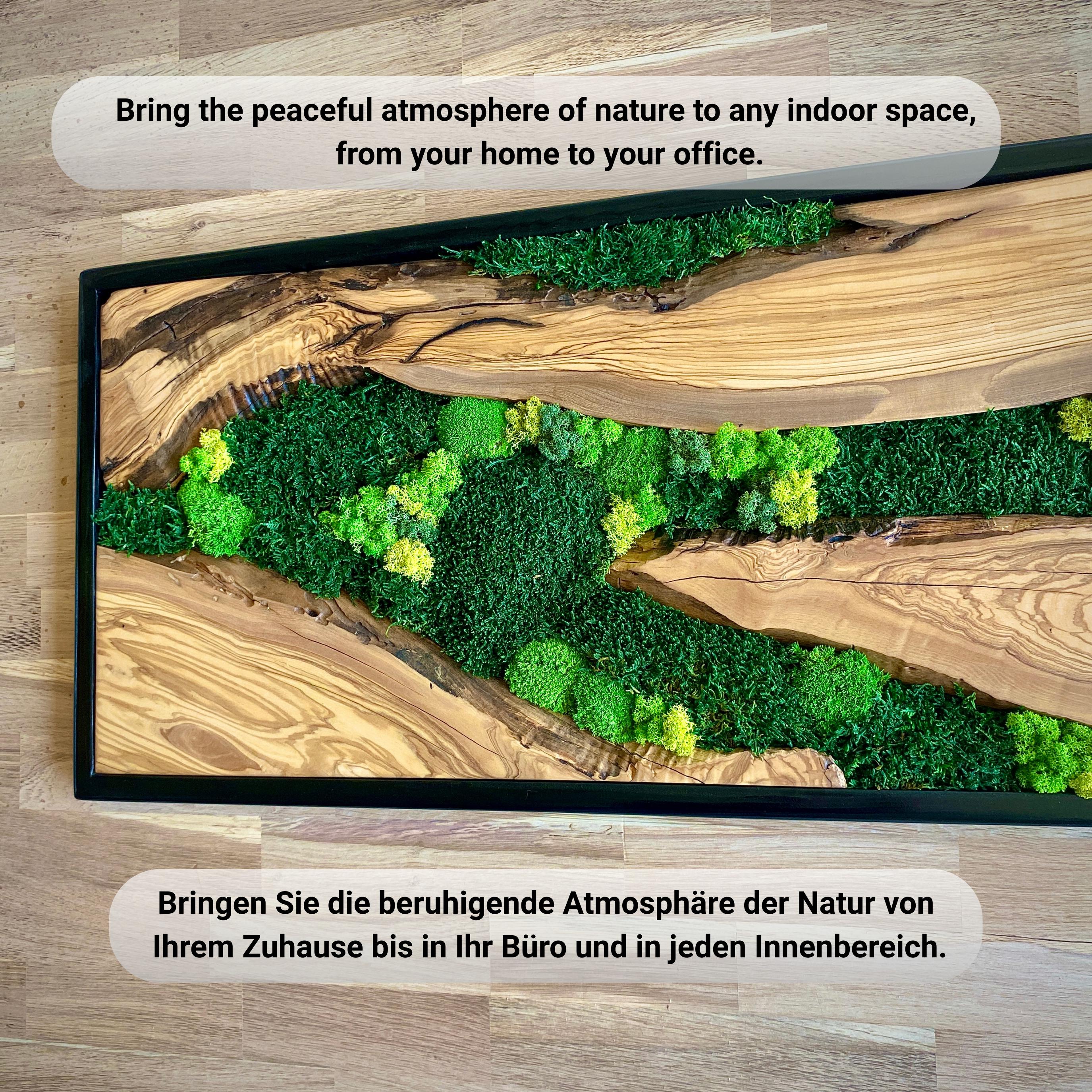 Preserved moss wall art needs no upkeep like watering, sunlight, or fertilizing. It stays the same size, just keep it away from sunlight, water and too much air.
