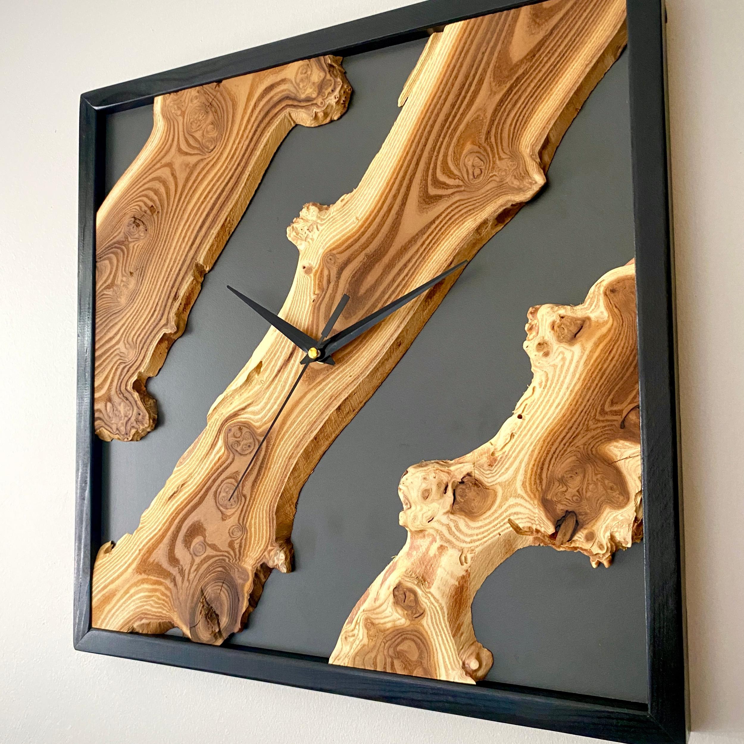 Every clock is made to order, ensuring your piece is truly unique. This live edge clock is not just a timepiece; it's a piece of wooden wall art. The silent wall clock mechanism ensures a peaceful ambiance, making it a perfect addition to any living room, bedroom, or office wall clock setting.