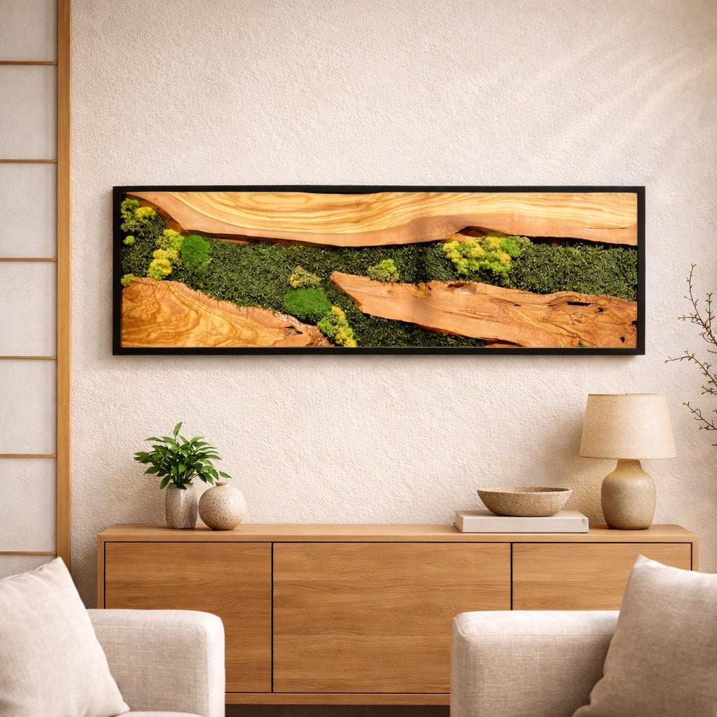 Preserved moss wall art needs no upkeep like watering, sunlight, or fertilizing. It stays the same size, just keep it away from sunlight, water and too much air.