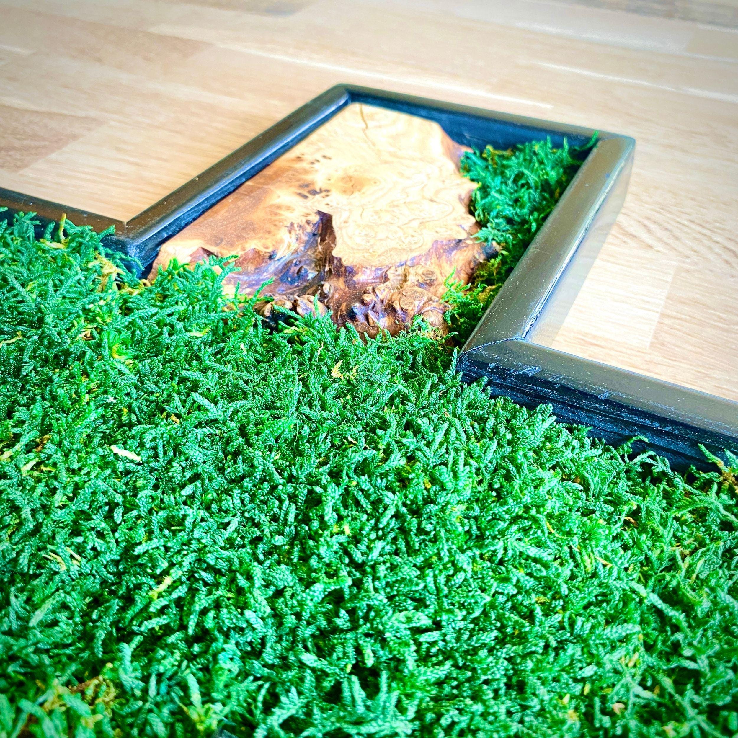 Preserved moss wall art needs no upkeep like watering, sunlight, or fertilizing. It stays the same size, just keep it away from sunlight, water and too much air.