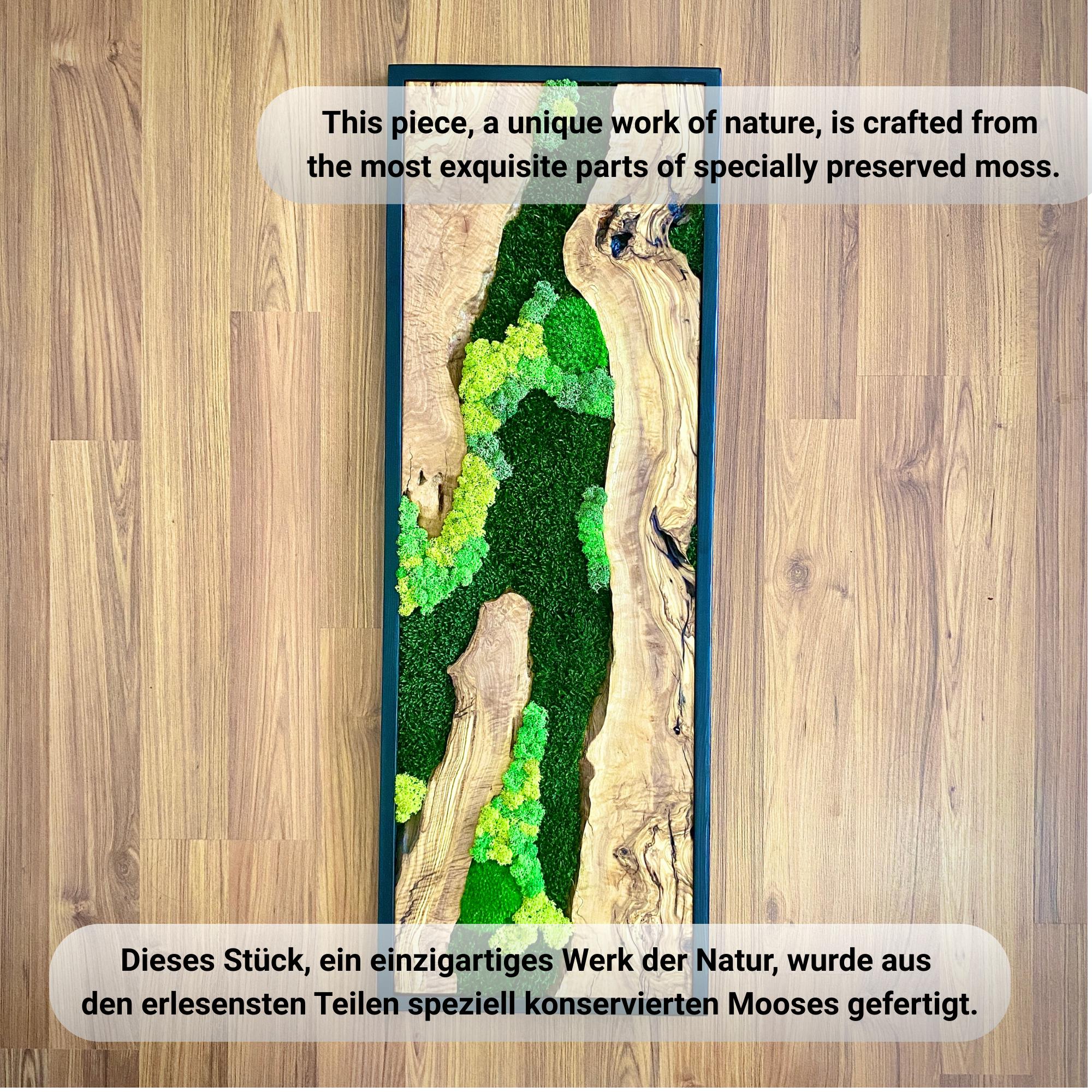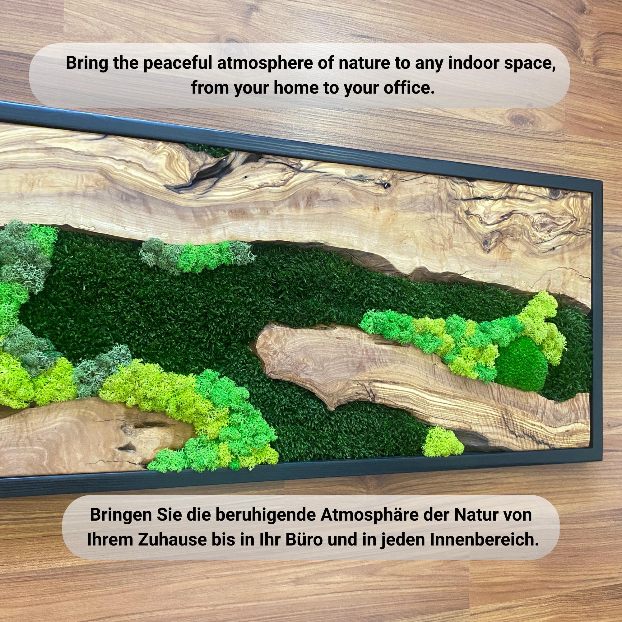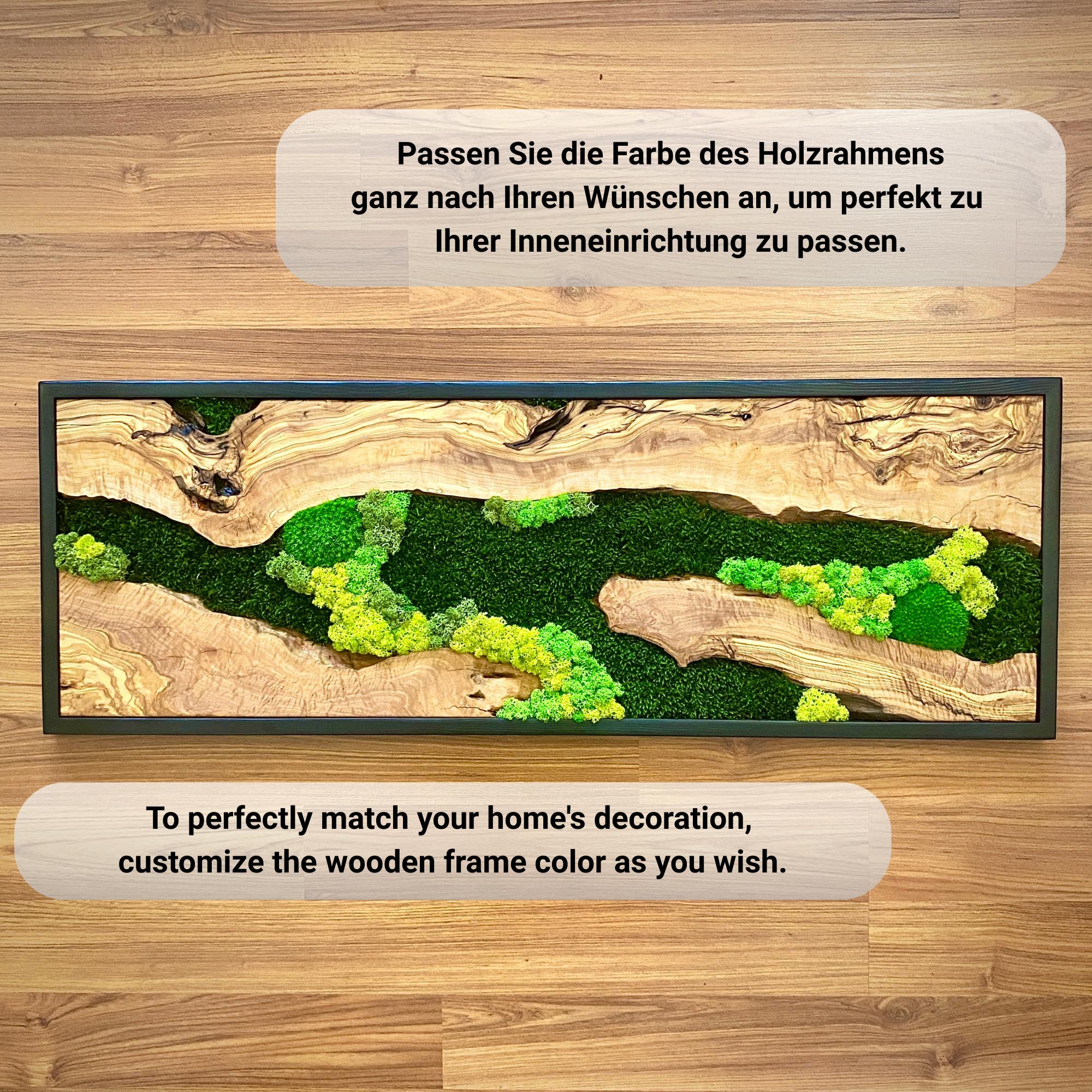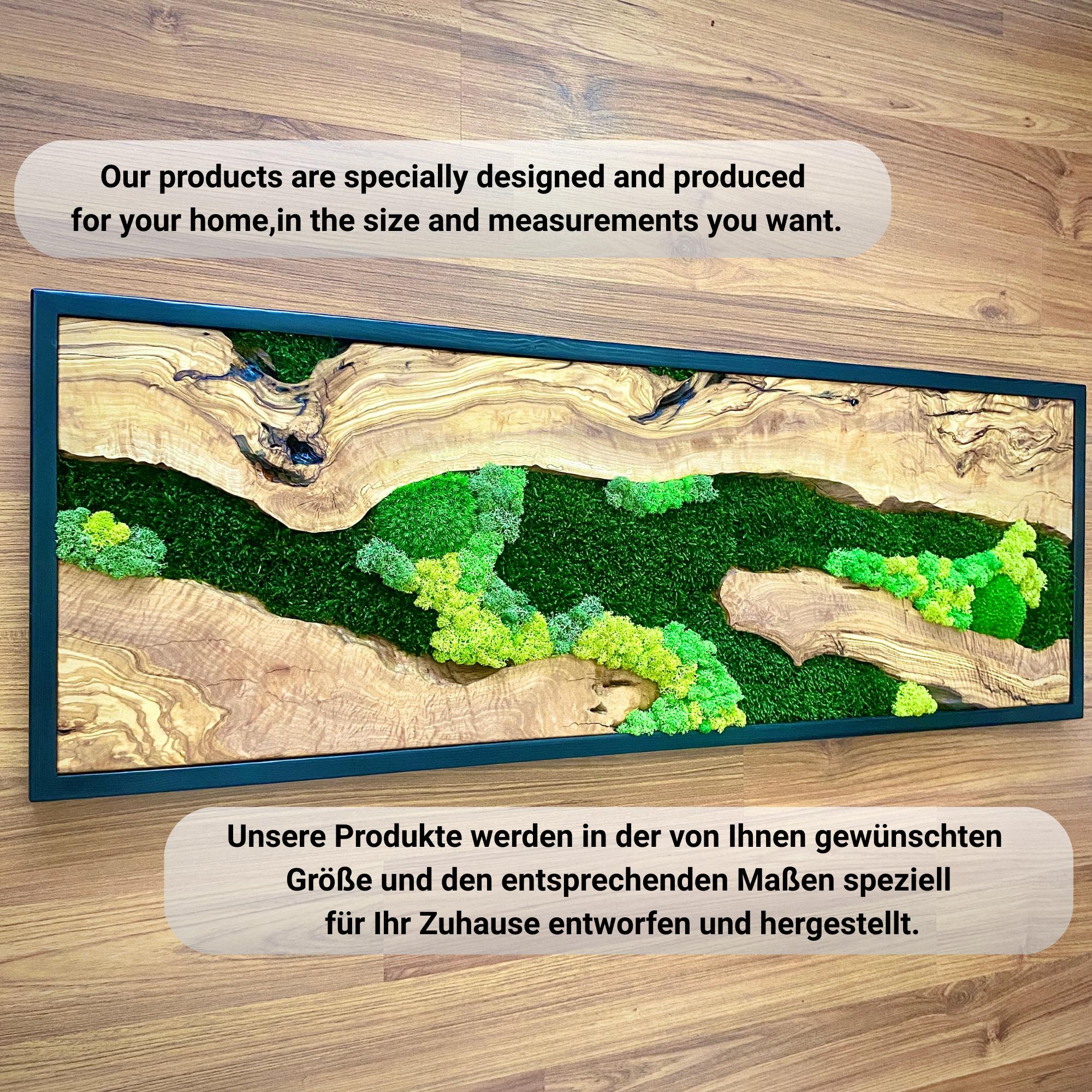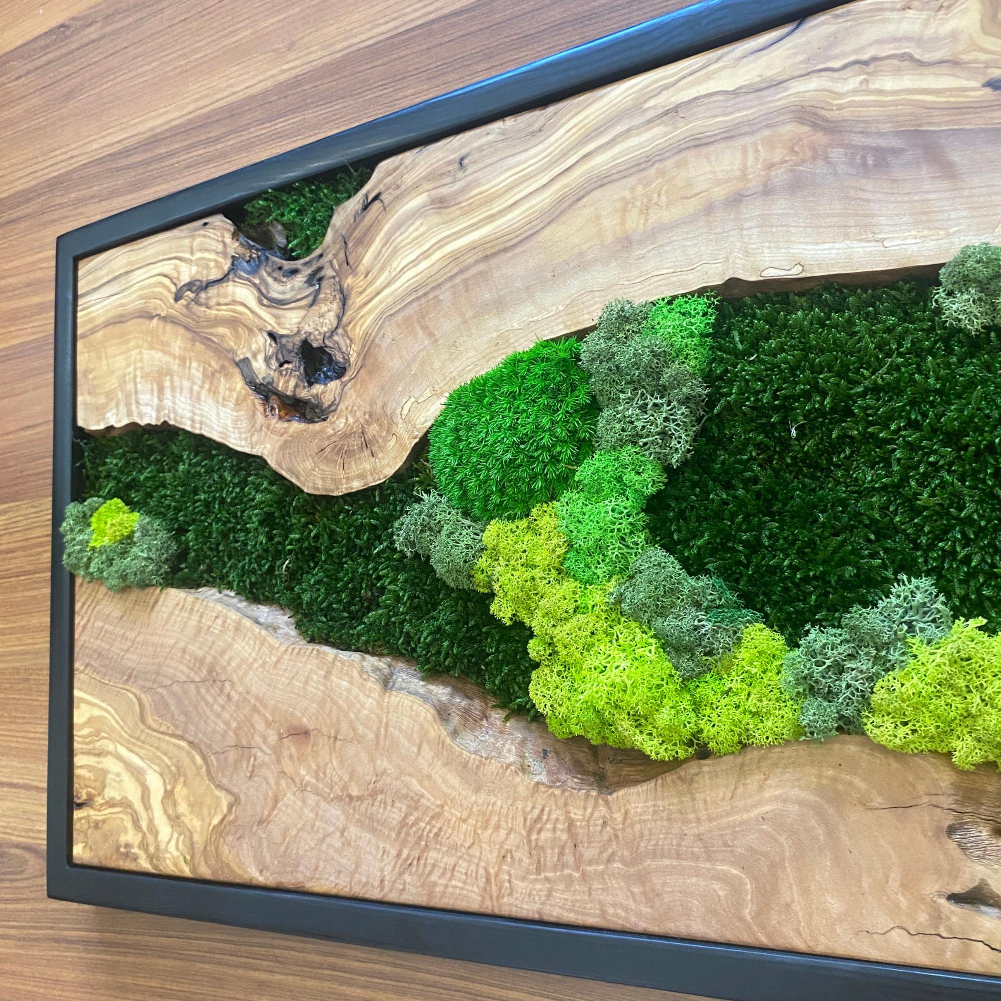 Preserved moss wall art needs no upkeep like watering, sunlight, or fertilizing. It stays the same size, just keep it away from sunlight, water and too much air.