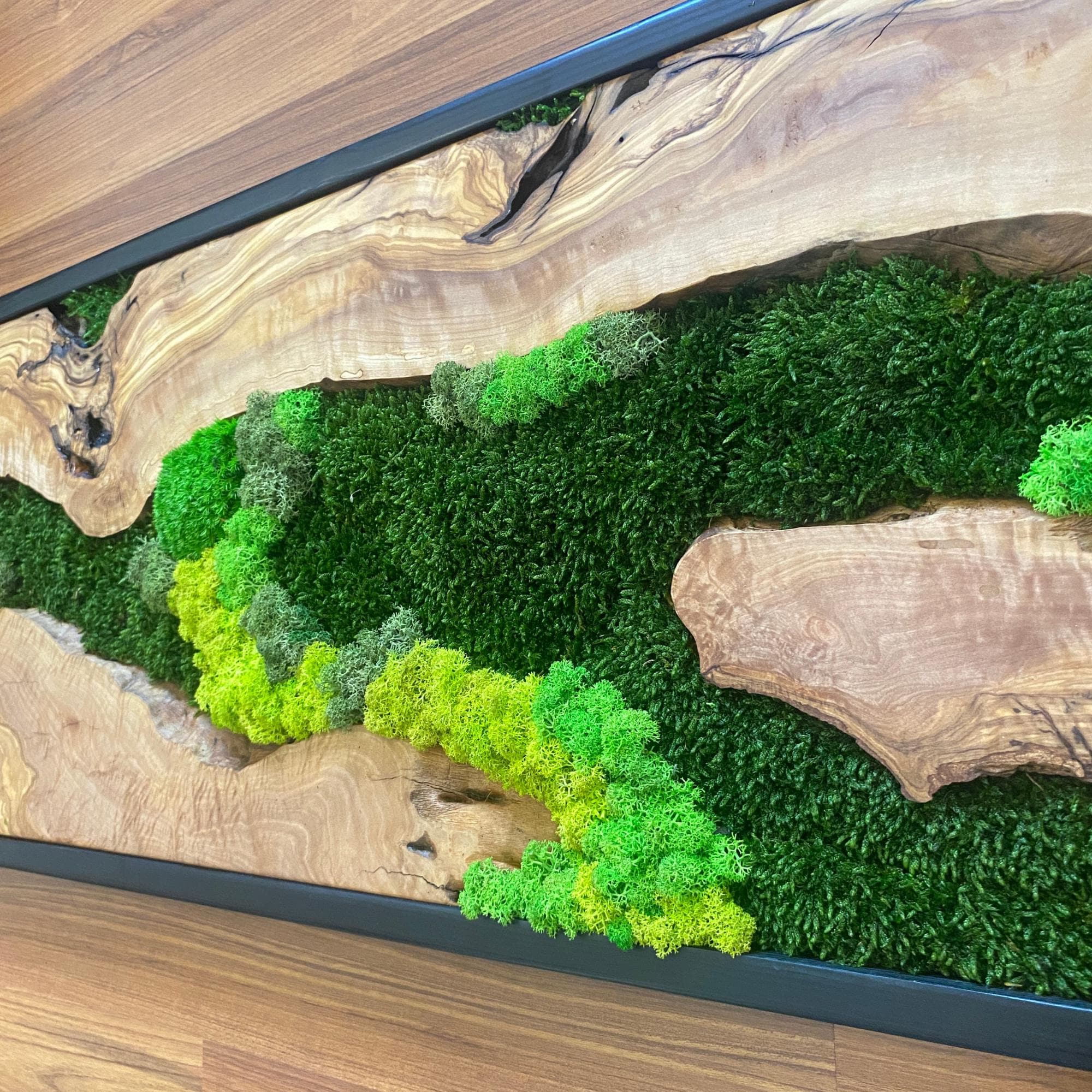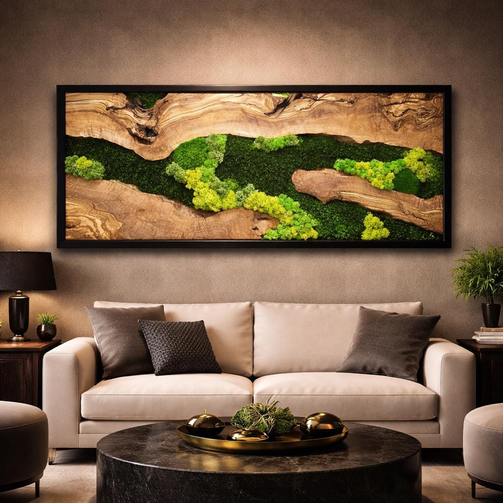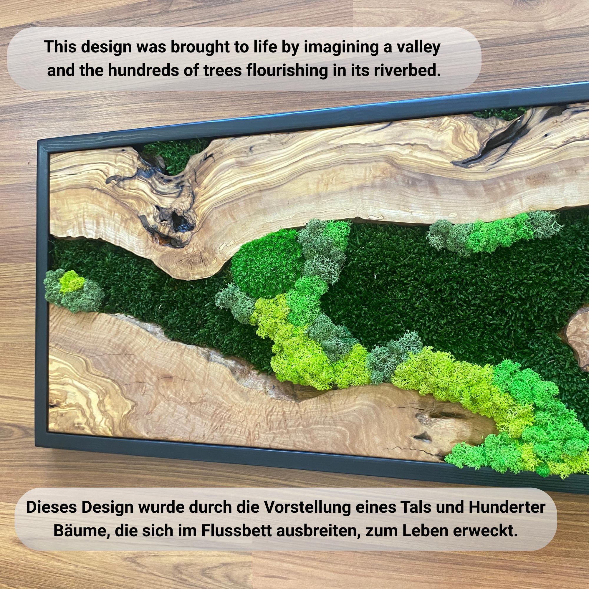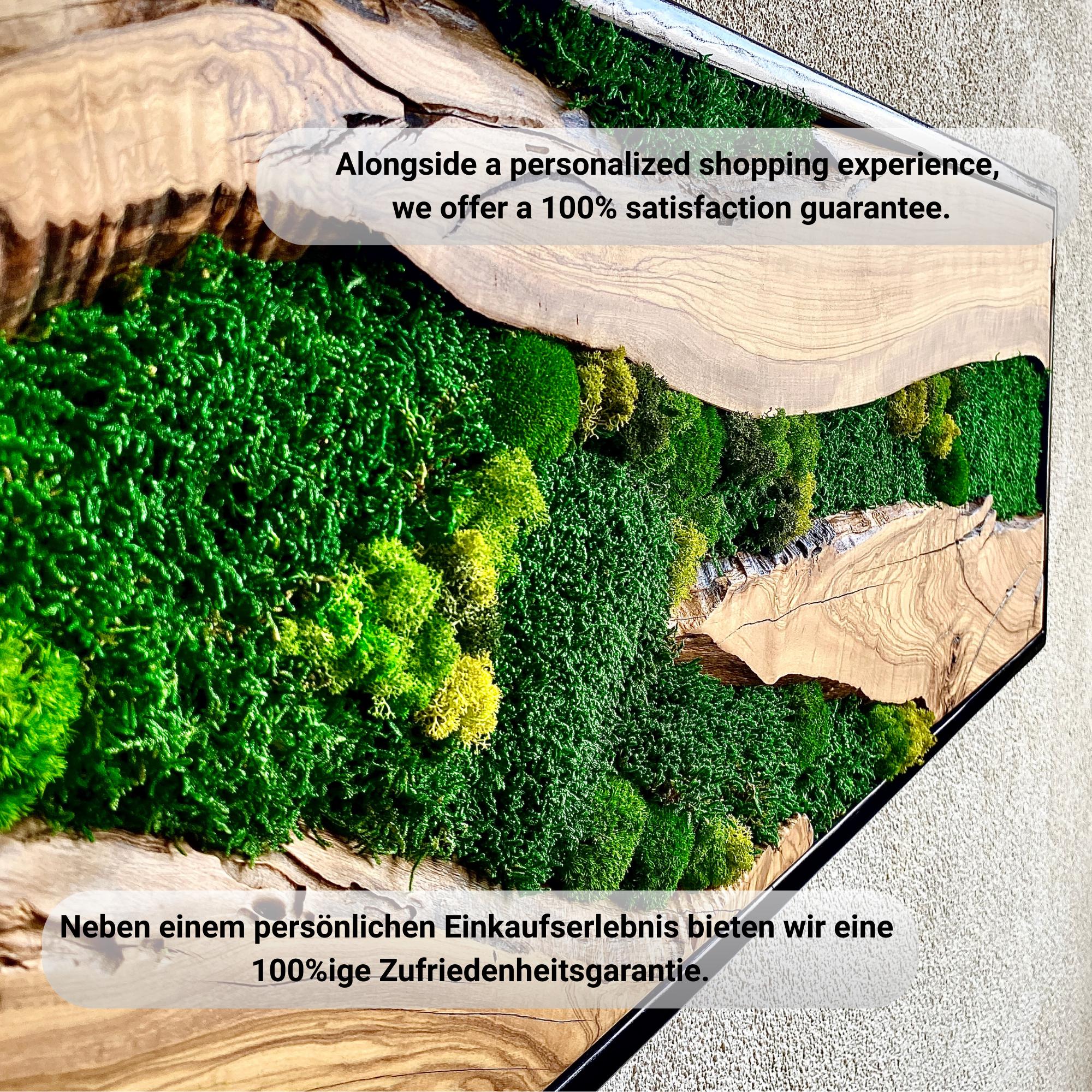 Preserved moss wall art needs no upkeep like watering, sunlight, or fertilizing. It stays the same size, just keep it away from sunlight, water and too much air.
