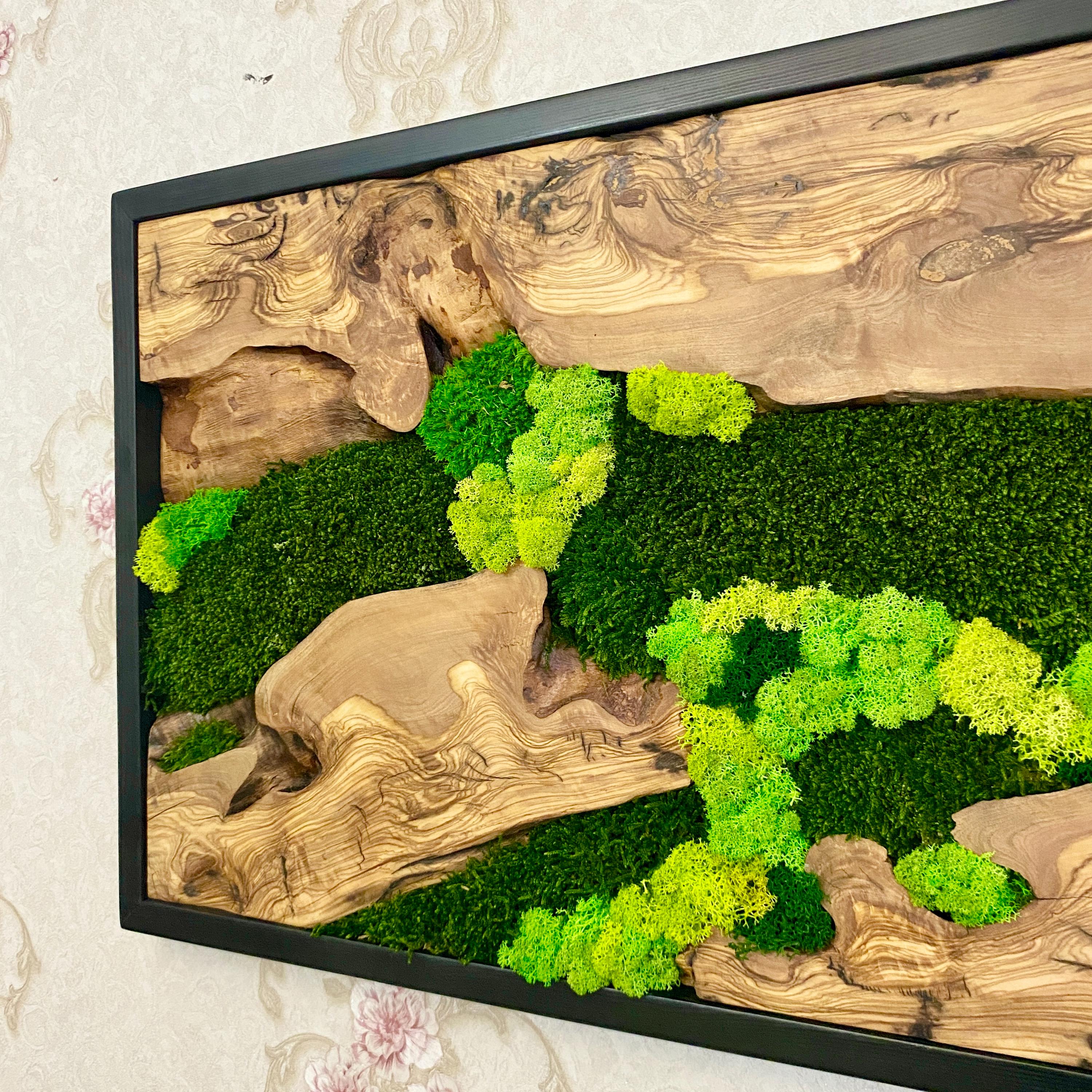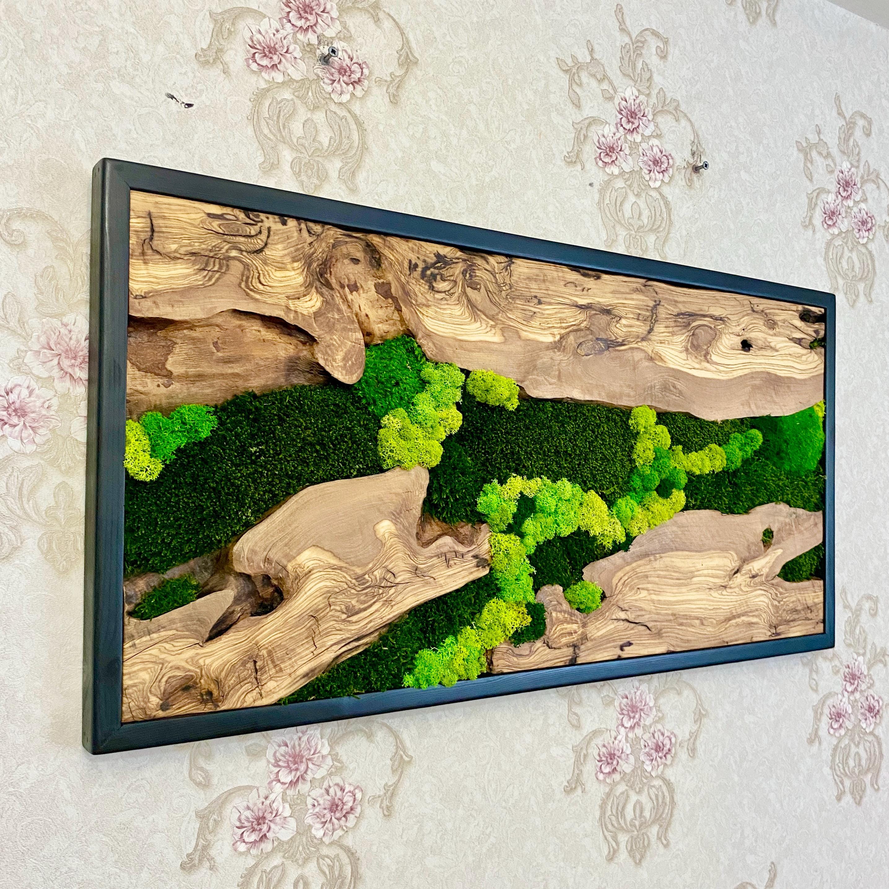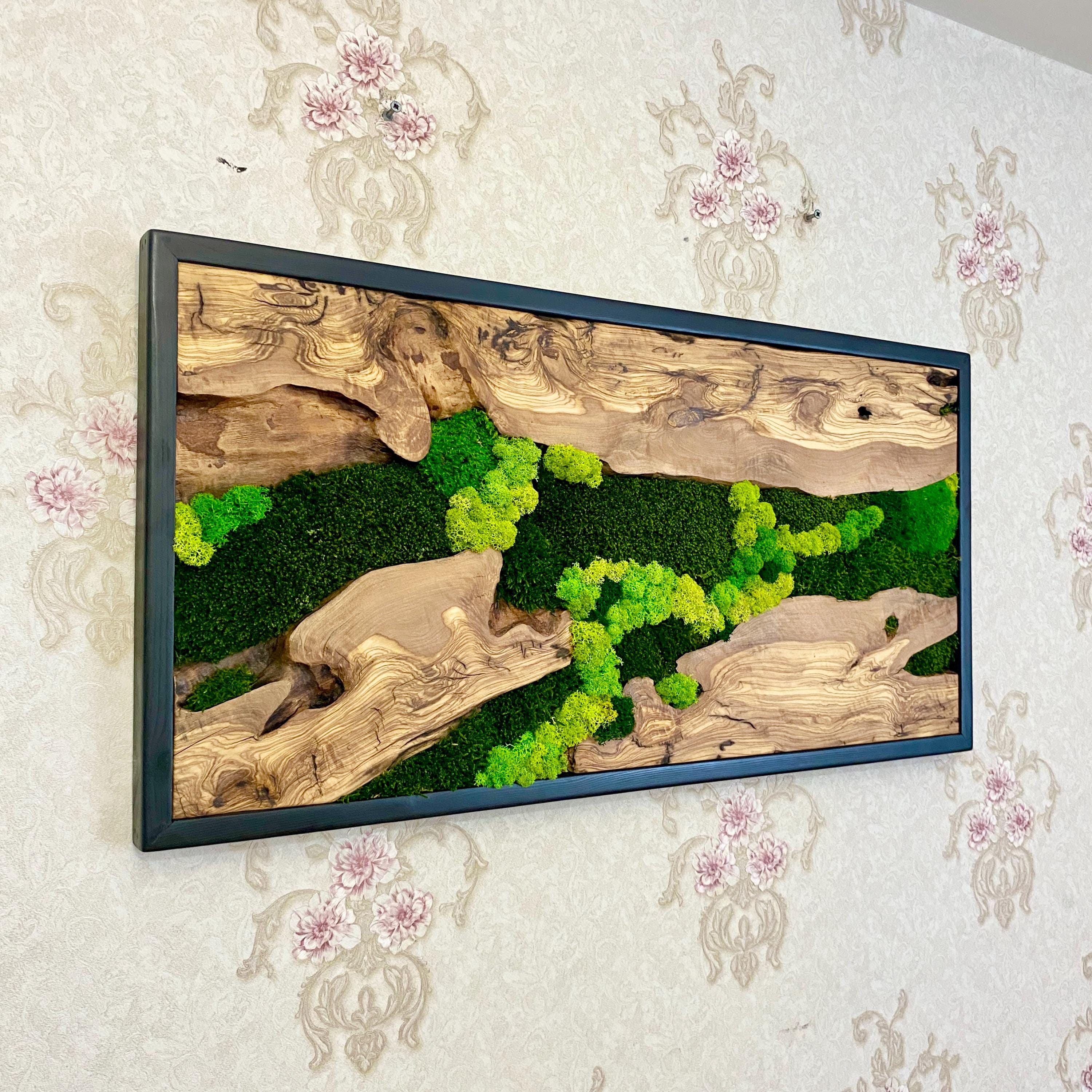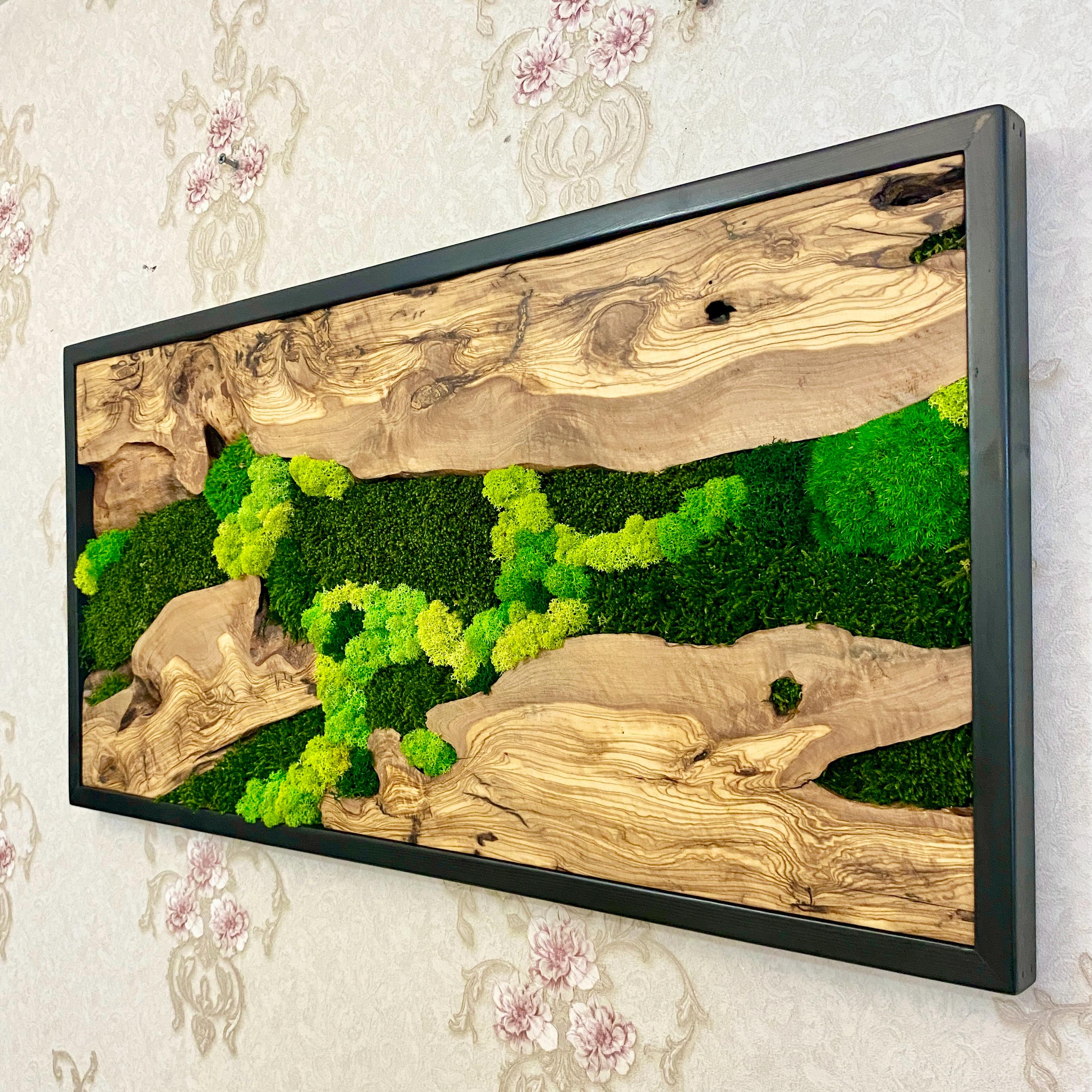 Preserved moss wall art needs no upkeep like watering, sunlight, or fertilizing. It stays the same size, just keep it away from sunlight, water and too much air.