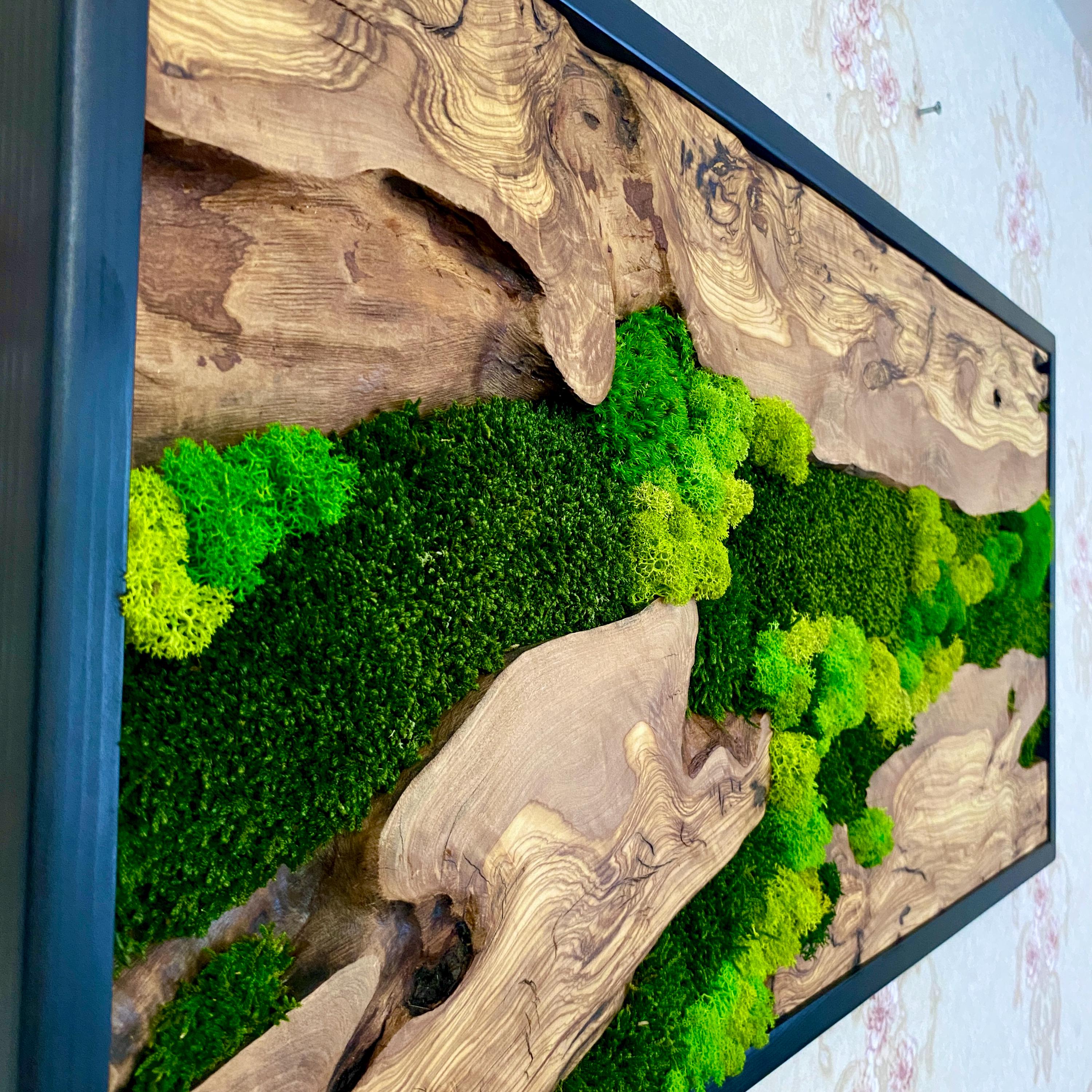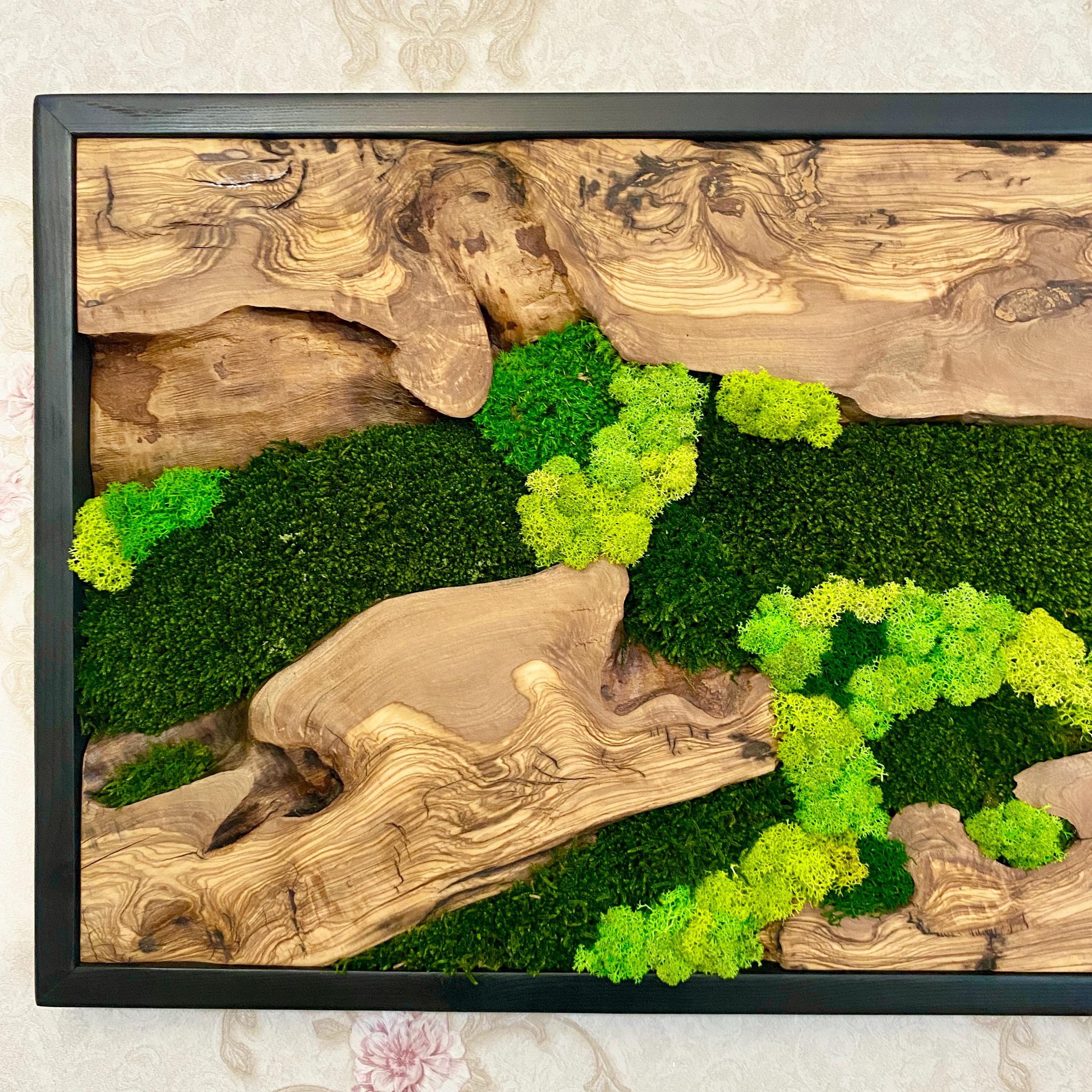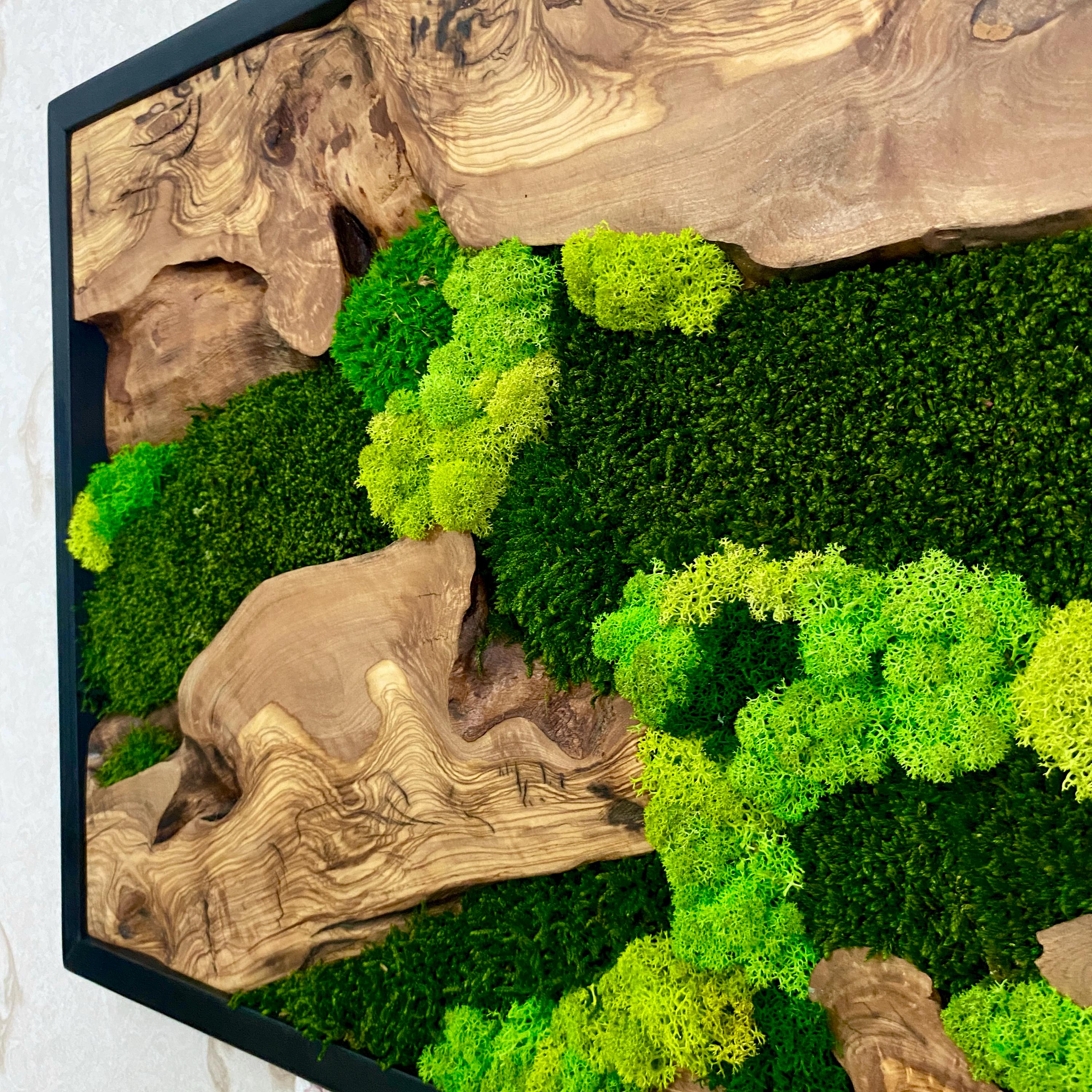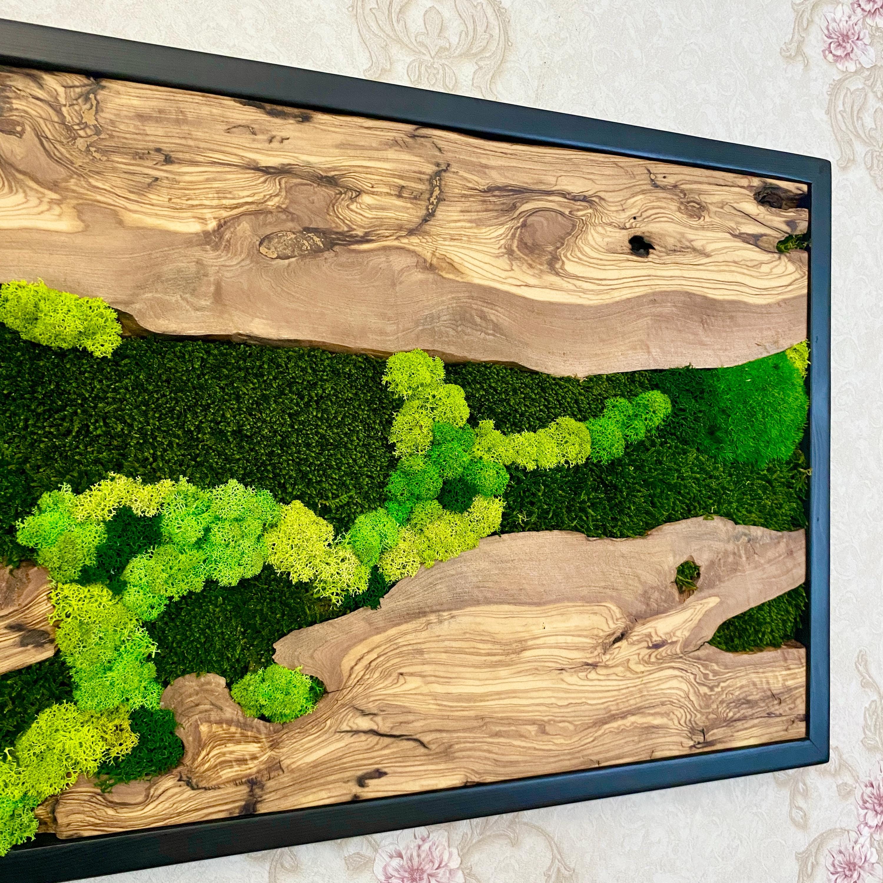 Preserved moss wall art needs no upkeep like watering, sunlight, or fertilizing. It stays the same size, just keep it away from sunlight, water and too much air.