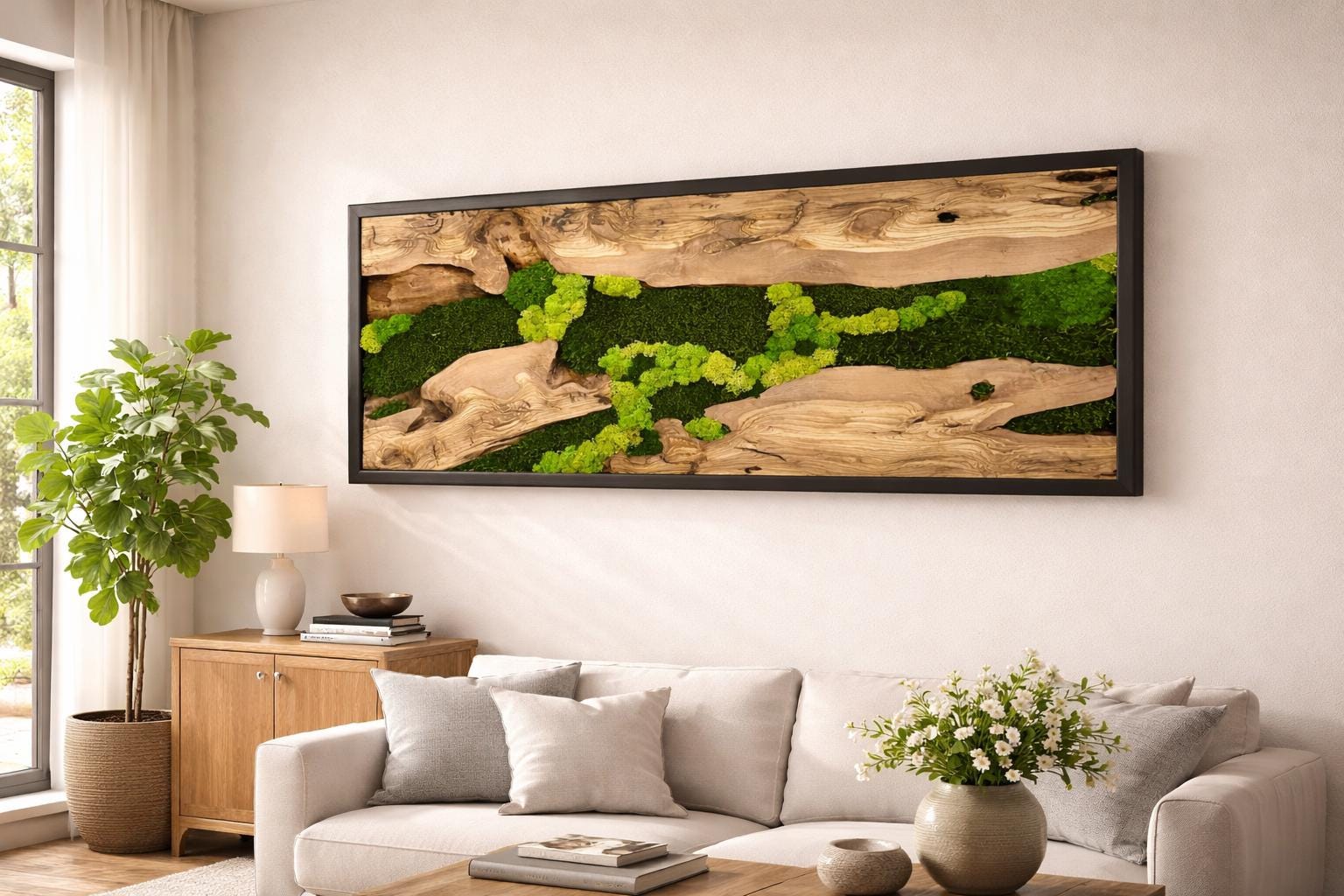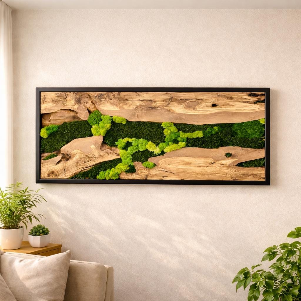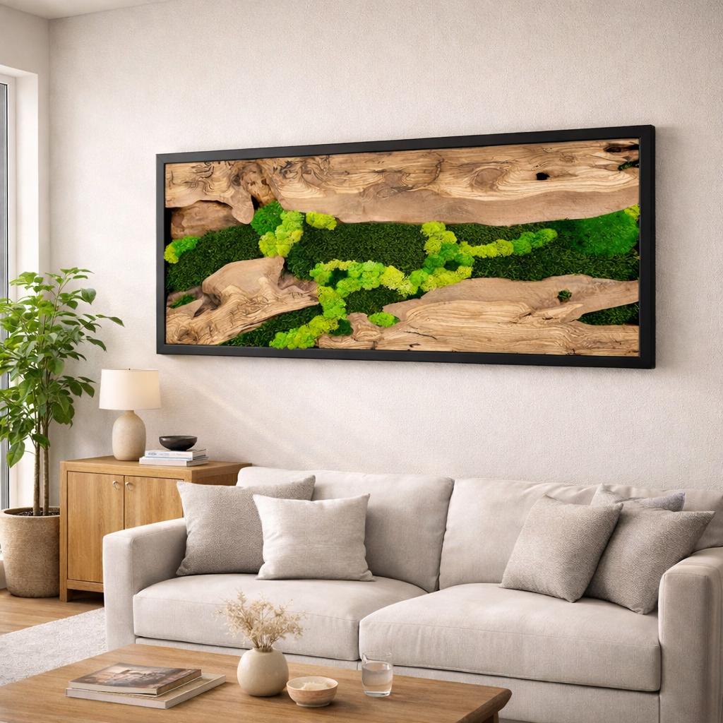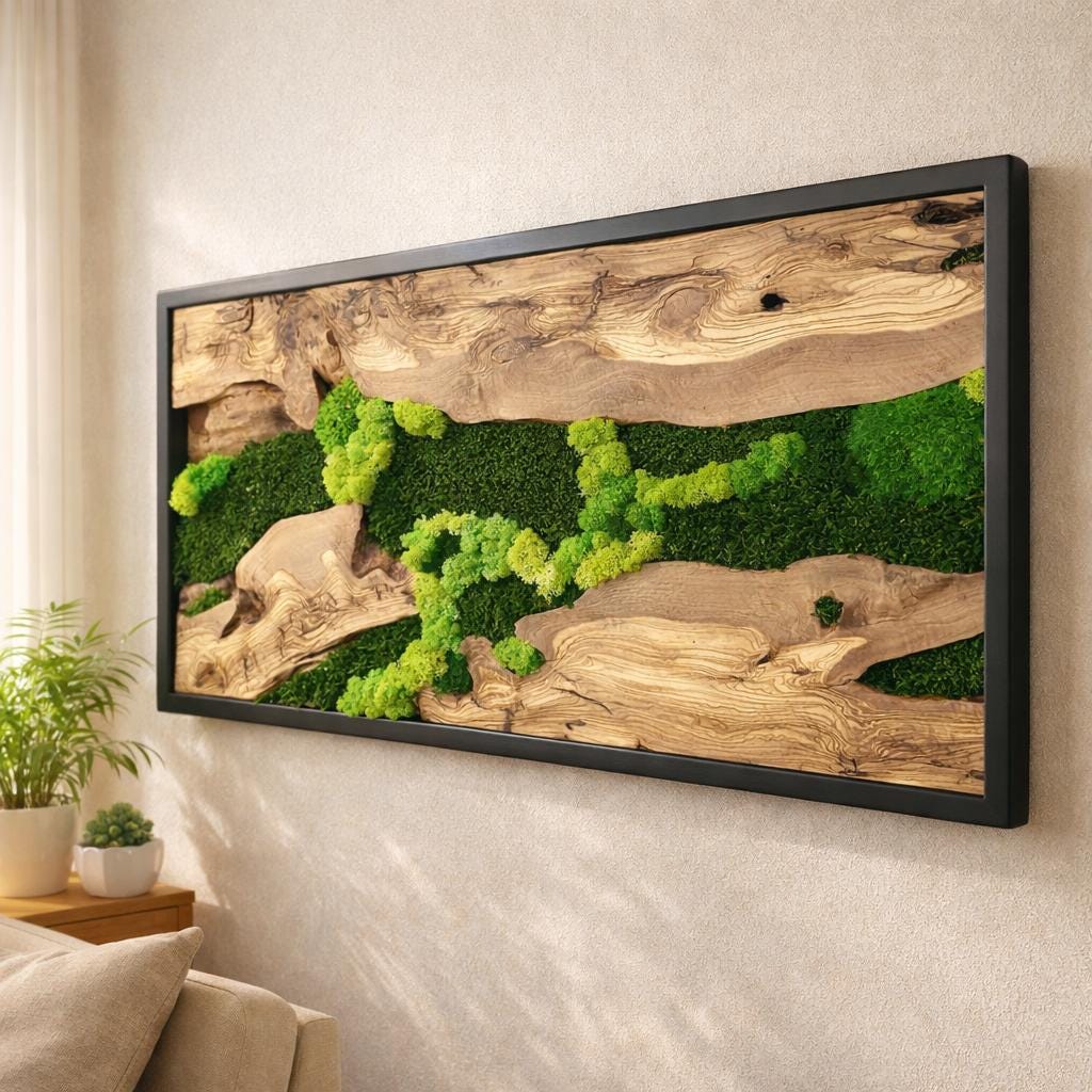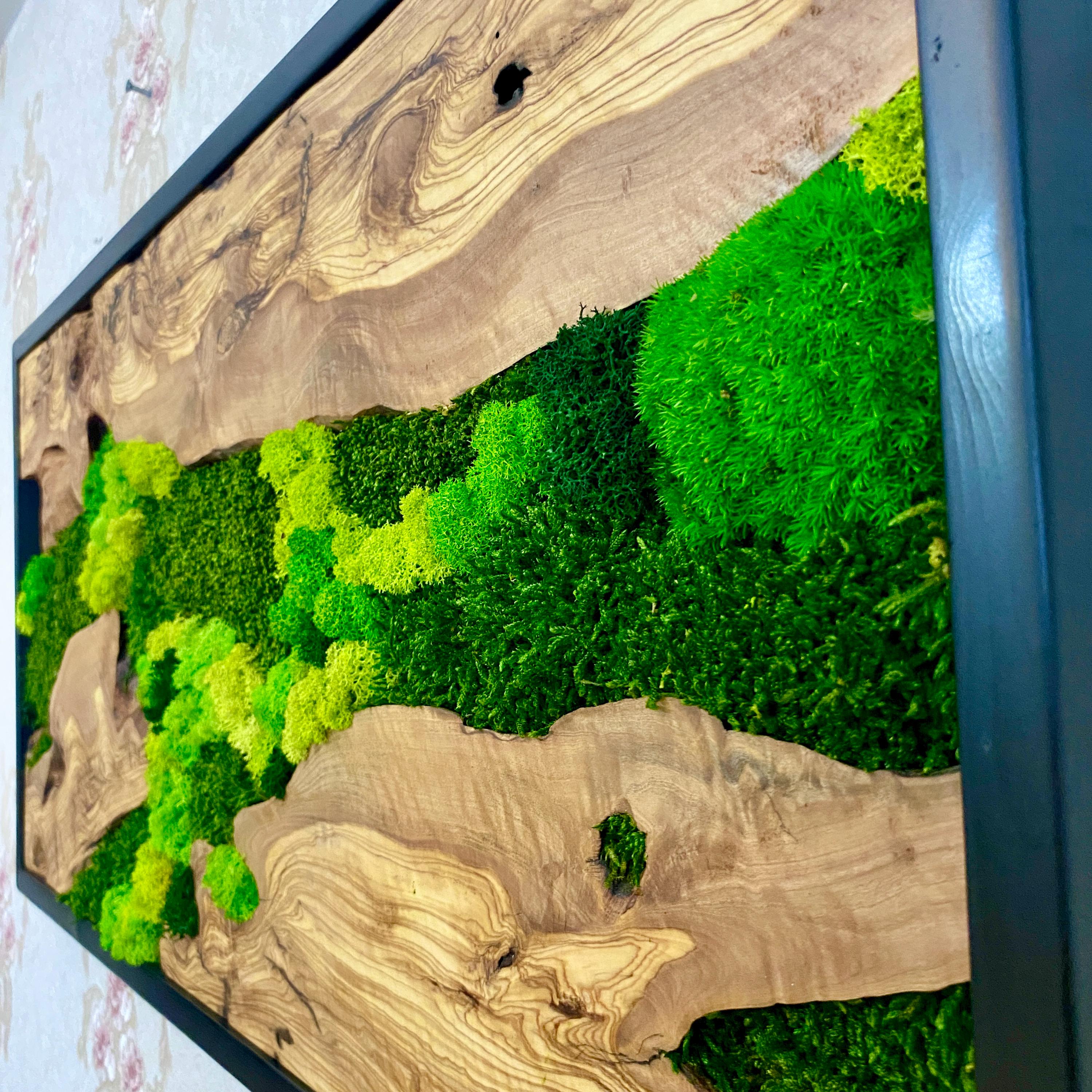 Preserved moss wall art needs no upkeep like watering, sunlight, or fertilizing. It stays the same size, just keep it away from sunlight, water and too much air.