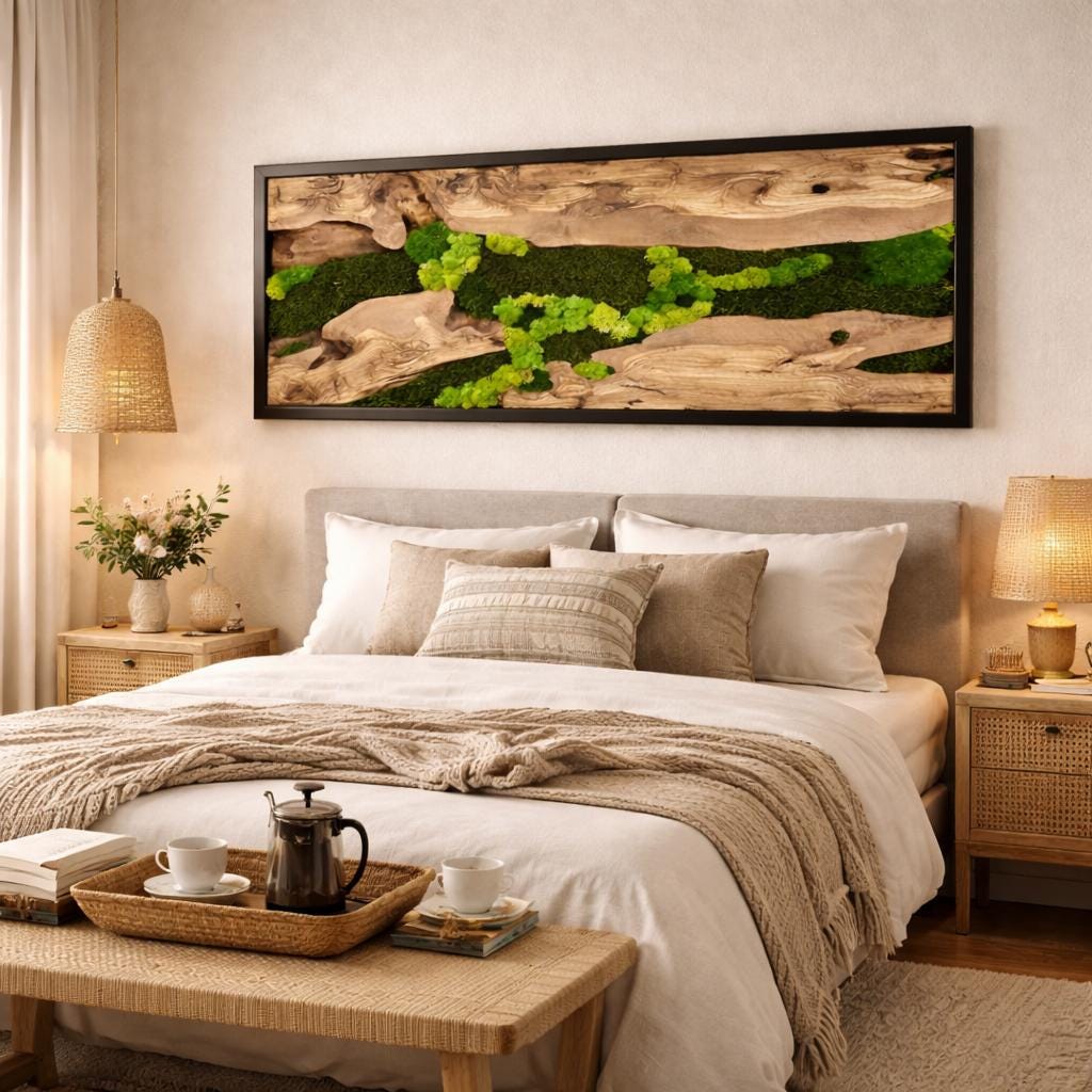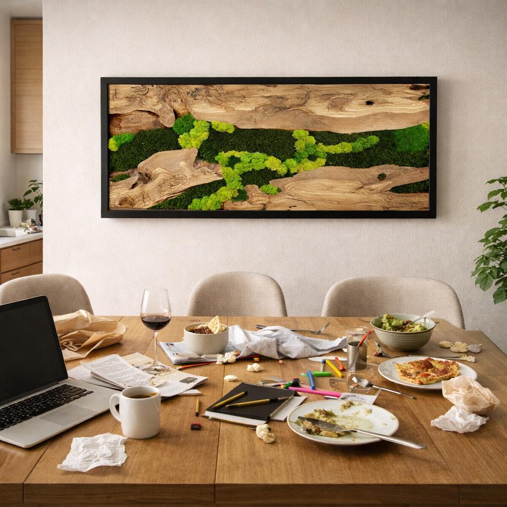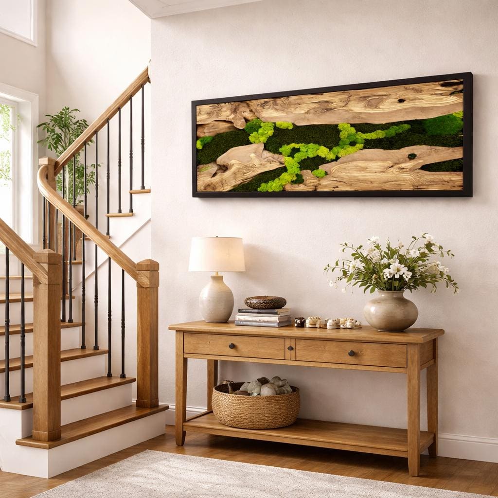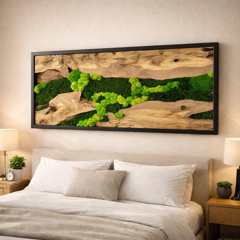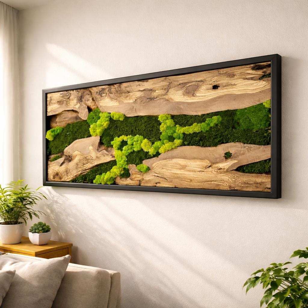 Preserved moss wall art needs no upkeep like watering, sunlight, or fertilizing. It stays the same size, just keep it away from sunlight, water and too much air.